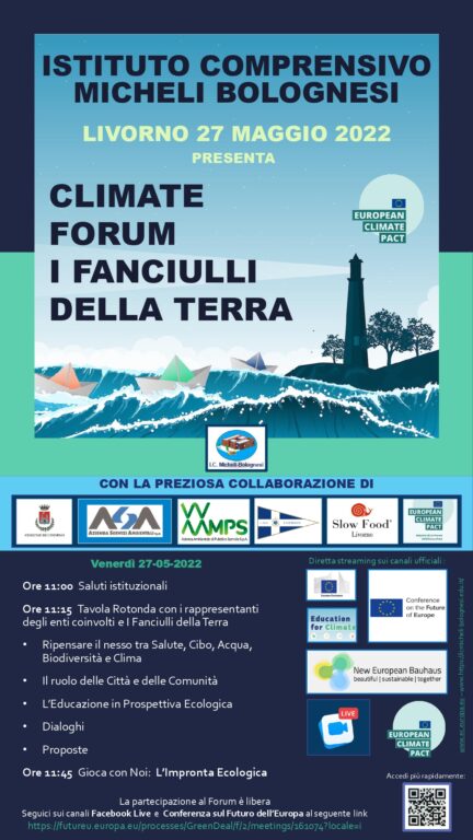 “Climate Forum: I Fanciulli della Terra”, una giornata interamente dedicata alla sensibilizzazione e alla diffusione di buone pratiche per contrastare i rischi dei cambiamenti climatici in atto sul nostro pianeta, come previsto dal Green Deal europeo che mira a rendere l’Europa climaticamente neutra entro il 2050, è in programma per venerdì 27 maggio, nel giardino della scuola primaria Campana (via Stenone, 18). L’evento, organizzato dall’Istituto Comprensivo Micheli-Bolognesi di Livorno in collaborazione con Comune di Livorno, Asa, Aamps, Slow Food Livorno, Lega Navale Italiana-Livorno, Rete europea degli Ambasciatori per il clima (EuropeanClimatePact Ambassadors), prevede interventi istituzionali, dialoghi, tavole rotonde e proposte dei “Fanciulli della Terra”. Il confronto e le analisi dei fattori climalteranti guideranno i ragazzi in una serie di riflessioni sull’impronta ecologica dello stile di vita delle famiglie e sulla percezione dei rischi ambientali dei cambiamenti climatici in un percorso di consapevolezza e trasformazione individuale e sociale. L’appuntamento di venerdì 27 maggio è stato illustrato negli spazi della scuola Campana dalla dirigente scolastica Cecilia Semplici, da Patrizia Bitetti Ambasciatrice europea per il clima, dalla vicesindaca con delega all’Istruzione Libera Camici e dall’assessora all’Ambiente Giovanna Cepparello. “Come indicato nell’obiettivo 13 dell’agenda 2030, Agire per il clima, anche la scuola – afferma la vicesindaca Libera Camici – è chiamata a promuovere azioni per contrastare il cambiamento climatico. L’educazione e il cambiamento climatico sono assolutamente profondamente connessi tra loro: nonostante le generazioni più giovani non siano responsabili della crisi climatica attuale saranno loro che dovranno affrontarla in prima persona nei decenni avvenire ed è pertanto necessario fornire loro urgentemente gli strumenti per farlo. Per questo motivo – aggiunge la Vicesindaca – mi sento di ringraziare sentitamente per il lavoro svolto in questa direzione l’Istituto Comprensivo Micheli-Bolognesi e in particolare la dirigente Cecilia Semplici e l’insegnate, nonché ambasciatrice europea per il clima, Patrizia Bitetti, così come il mio ringraziamento va anche a Asa, Aamps, Slow Food Livorno, Lega Navale Italiana-Livorno che hanno collaborato a questo evento. L’educazione può ancora davvero contribuire significativamente a ‘salvare’ il pianeta”. L’assessora Giovanna Cepparello sottolinea quanto sia “importante e strategico che fin dalla scuola primaria si affronti il tempa della lotta ai cambiamenti climatici in modo multidisciplinare e attraverso strategie operative e laboratoriali”.