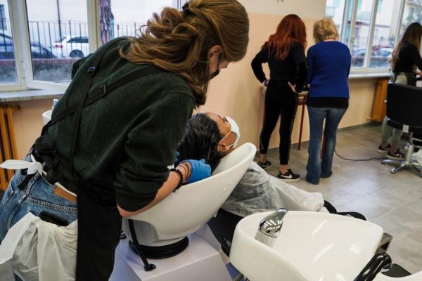 Negli spazi della sede di via San Gaetano dell’Istituto Vespucci-Colombo si respira aria di normalità. A fare da padroni sono phon, bigodini, pinzette e moltissimi altri strumenti legati al mondo di estetisti e parrucchieri (foto Lorenzo Amore Bianco).