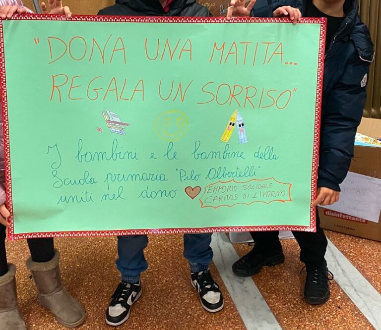 Il 4 dicembre il plesso della scuola primaria Pilo Albertelli dell’I.C. Micali di Livorno guidato dalla Dirigente Rita Moretti, si è resa partecipe di un bellissimo progetto di solidarietà: “Dona una matita… regala un sorriso”. Proposto dalla referente del progetto l’ins. Agata Parrino e condiviso da tutte le colleghe e colleghi, si è deciso di fare una raccolta di materiale in favore dell’Emporio Solidale della Fondazione Caritas di Livorno in via Giorgio La Pira al civico 9. La scuola come agenzia educativa, nella semplicità di un piccolo gesto che ha coinvolto tutti gli alunni, genitori e docenti, ha voluto promuovere momenti di riflessione sul significato del dono e della solidarietà. In poco tempo, grazie alla partecipazione condivisa da tutti con entusiasmo, sono stati raccolti centinaia di quaderni, matite, pennarelli. Con la guida del responsabile dell’emporio Guido De Nicolais, gli alunni delle classi quinte hanno potuto visitare e conoscere il funzionamento dell’emporio, i locali della mensa, della cucina, il guardaroba e soprattutto vedere l’operato dei volontari. E’ stata una bellissima esperienza che speriamo possa rimanere nel cuore dei nostri alunni perché come detto alle famiglie se durante una lezione in classe le parole sono belle, l’esempio è il miglior modo per trasmettere i valori più importanti della vita.