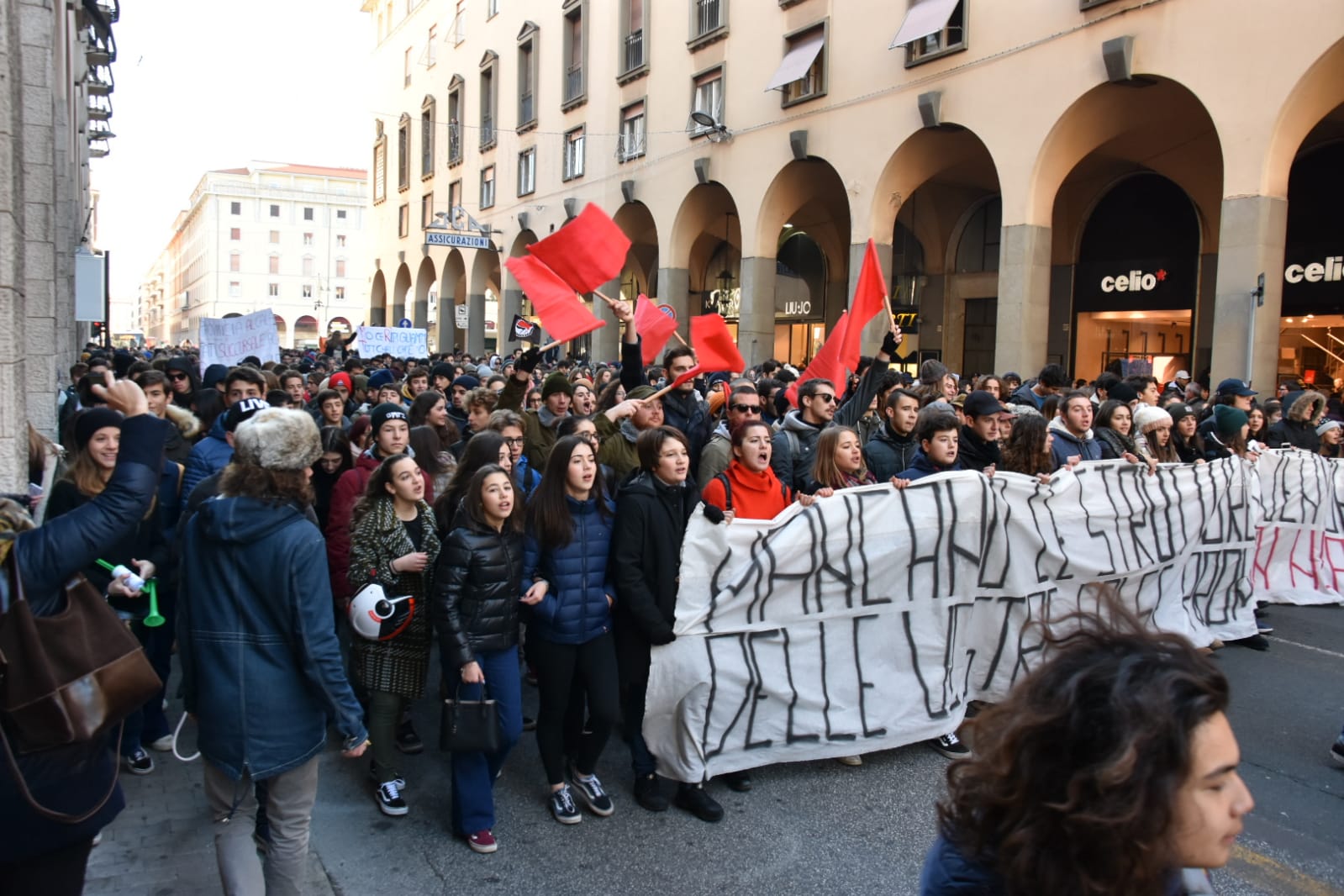 Grande successo per la manifestazione congiunta di tutti gli istituti superiori cittadini scesi in piazza (oltre 2000 studenti in corteo) giovedì 10 gennaio per esprimere solidarietà nei confronti dei colleghi di via della Bassata che da lunedì 7 gennaio sono di fatto in sciopero per protestare contro la decisione di effettuare “doppi turni” (lezioni mattutine e pomeridiane) a fronte di un’agibilità della succursale dell’Enriques (via Calafati) risultata non a norma nelle certificazioni di sicurezza antincendio.