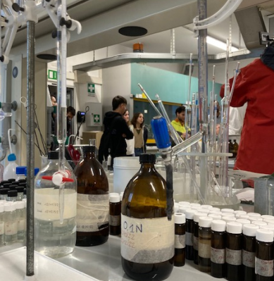 Nella prima foto gli studenti in visita al telecontrollo e nella seconda al laboratorio analisi