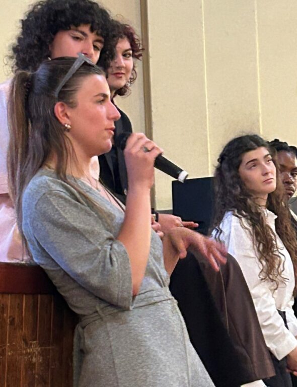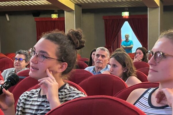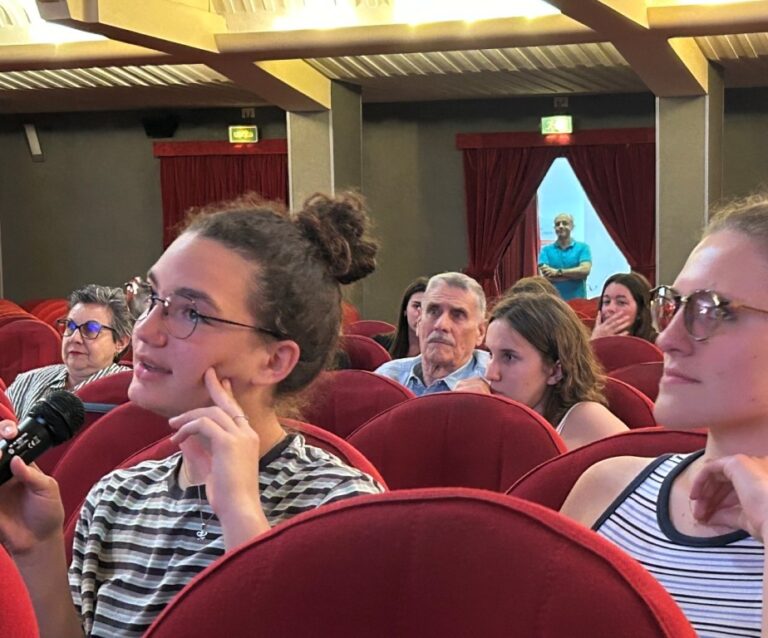 Lunedì 29 maggio al Cinema 4 Mori le classi quinte del Liceo Linguistico Cecioni hanno condiviso con la comunità livornese il progetto “The Cream tea and oldbooks debating society” che ha visto nel corso dell’anno scolastico le classi del triennio “Linguistico” dibattere in inglese di “letteratura e vita”. La prof.ssa Cristina Licco ha tenuto il discorso di apertura e portato i saluti della DS dott.ssa Manuela Mariani impossibilitata a partecipare per via di impegni istituzionali. La vicepreside si è congratulata con i ragazzi e con i docenti del dipartimento di inglese per aver portato studentesse e studenti a confrontarsi e a condividere il proprio lavoro con la comunità. Ha inoltre ringraziato la Direttrice del Teatro 4 Mori, Serena Cassarri, per aver ospitato a più riprese i ragazzi che dal mese di gennaio si sono incontrati regolarmente al cinema per vedere film in versione originale. e dibattere.