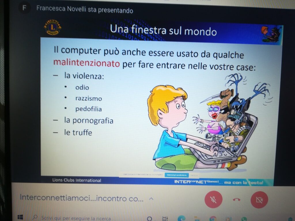 Il Cyberbullismo e le insidie che si nascondono nelle chat dei videogiochi sono i due argomenti che hanno particolarmente attirato l’attenzione degli alunni di tre classi IV della scuola primaria Lambruschini che hanno partecipato a “Interconnettiamoci… ma con la testa”, l’ incontro organizzato dal Lions Club Porto Mediceo. Un incontro… in Dad, in ossequio alle normative anti-Covid. I relatori Francesca Novelli e Maurizio Toninelli erano collegati da casa loro con le tre classi delle insegnanti Laura Cabras, Simonetta Lami e Silvia Biondi. Lo scorso anno l’incontro è saltato, a causa della pandemia, e quest’anno si è riusciti a organizzarlo con questa modalità grazie all’entusiasmo delle insegnanti e del dirigente scolastico Carmine Villani che, in altra scuola, ha già aderito all’ormai collaudatissimo progetto del Lions Club, ideato da Piero Fontana e che da quest’anno si avvale della collaborazione di esperti del club Lions locali.