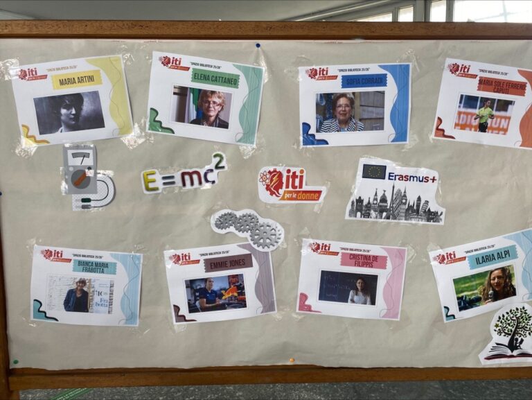 Il 9 marzo è stata inaugurata la mostra Iti per le donne, un progetto promosso dallo Spazio Biblioteca dell’Itis Galilei, con referenti la prof.ssa M. Degan, il prof. A. Sabia e la partecipazione degli studenti G. Russo, G. Criminisi, L. Cosci della classe 3 A CEM. La mostra vuole celebrare le donne di ieri e di oggi che hanno fatto la differenza nel mondo della tecnologia, delle carriere Stem, dello sport e delle discipline umanistiche e scientifiche. Il percorso, itinerante all’interno dell’istituto, offre a tutti i visitatori, agli studenti ed ai docenti, la possibilità di individuare nei diversi dipartimenti e nelle location dell’istituto tutti i profili e le vicende di queste “comuni donne straordinarie” attraverso l’immagine, la presentazione e il QR code di approfondimento. Una giornata didattica in cui le classi si sono divertite a spaziare nelle diverse location scolastiche a caccia dei profili proposti. La mostra è un’occasione per riflettere sull’importanza delle donne in questi settori e per ispirare le nuove generazioni a seguirne le  carriere. Le docenti di sostegno A. Bondi e S. Cappellini hanno presentato alcuni lavori creati con gli studenti loro affidati ,aggiungendo alla mostra-ricerca l’ opportunità di approfondire l’importanza dell’inclusione, della collaborazione e del rispetto reciproco. Il progetto è un esempio di come la scuola possa promuovere la parità di genere e l’inclusione, offrendo agli studenti modelli di riferimento positivi e ispiratori. Un ringraziamento speciale va anche al Soroptimist Italia, che ha donato dei segnalibri contro la violenza sulle donne, contribuendo a sensibilizzare la comunità scolastica su questo importante tema.