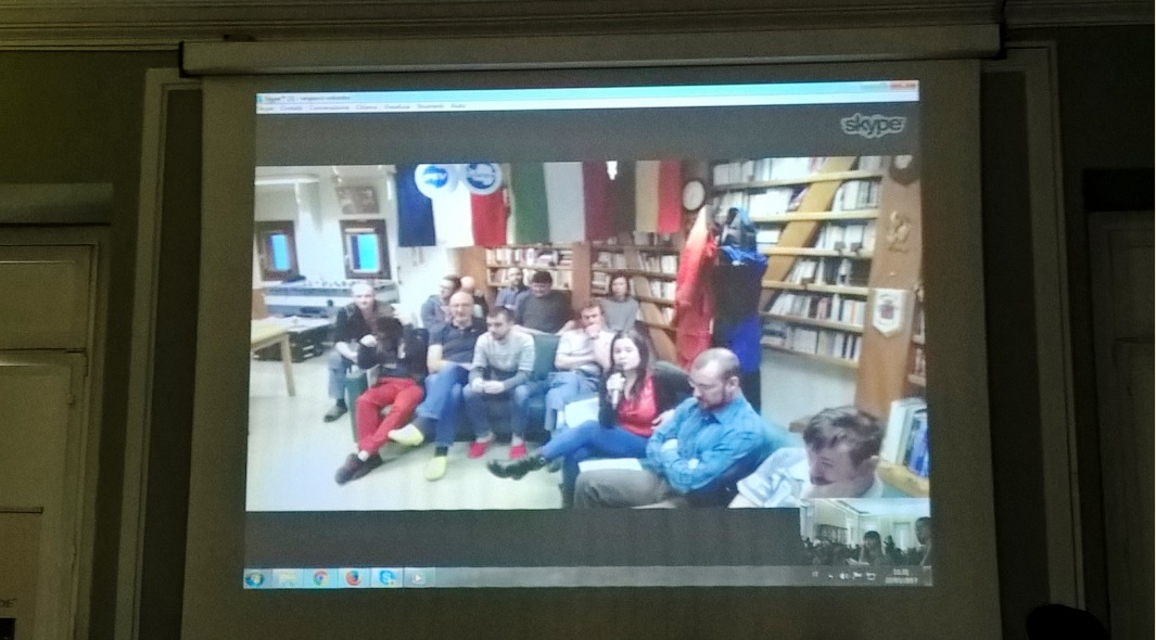 Momento clou è stato il collegamento via Skype con Stazione Concordia in Antartide, grazie al quale tutti gli studenti hanno potuto rivolgere le loro domande alla squadra tecnica che si trova al momento laggiù, composta da italiani, francesi e belga. Dialogando con loro, gli studenti hanno potuto capire come si svolgono le giornate in Antartide, nonostante i sei mesi di luce piena e i mesi di buio totale, cosa indossino per uscire, come reagisca il corpo a temperature che possono raggiungere i -77 °C, con venti a 5,5 m/sec., cosa mangino durante la loro permanenza e tante altre curiosità sia relative alla vita quotidiana sia alla ricerca scientifica; inoltre hanno potuto ammirare le bellezze subacquee, grazie al video realizzato da Riccardo Pini, durante le sue immersioni per sistemare apparecchiature scientifiche e sentire dalla sua voce il racconto di incontri ravvicinati con le foche, ma anche la difficoltà di lavorare in condizioni estreme, ribadite anche dal dottor Lazzarini che ha sottolineato come il silenzio “assordante” dell’Antartide condizioni inevitabilmente il ritorno alla vita sociale, così come l’assenza prolungata di sale dall’acqua bevuta per tanto tempo, mantenga i suoi effetti sull’organismo per settimane anche se si torna alla normalità dei cibi di casa.