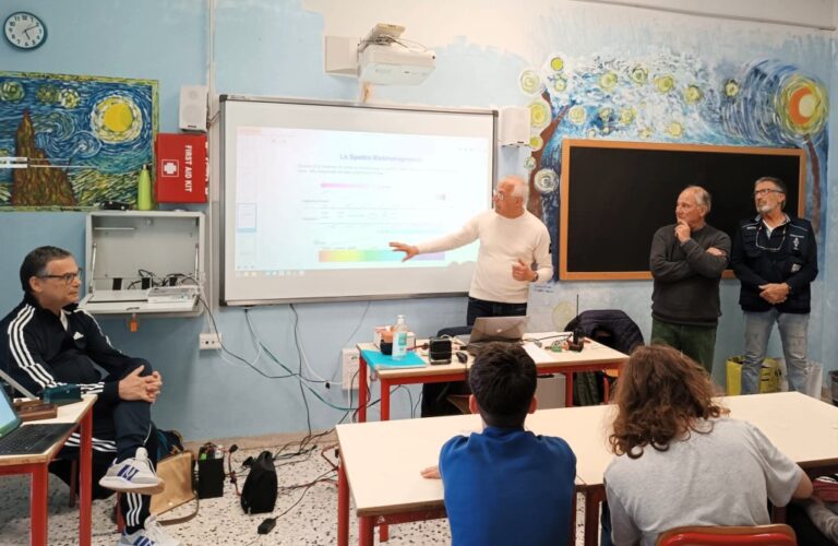 Nel pomeriggio di giovedì 8 maggio si è svolto presso l’Istituto Comprensivo “G. Mazzini” un incontro tra i rappresentanti della Sezione di Livorno dell’A.R.I. (Associazione Radioamatori Italiani) e le alunne e gli alunni del corso “Sperimentiamo lo spazio”, organizzato dalla scuola nell’ambito del progetto “Scuola Mazzini chiama Spazio”.