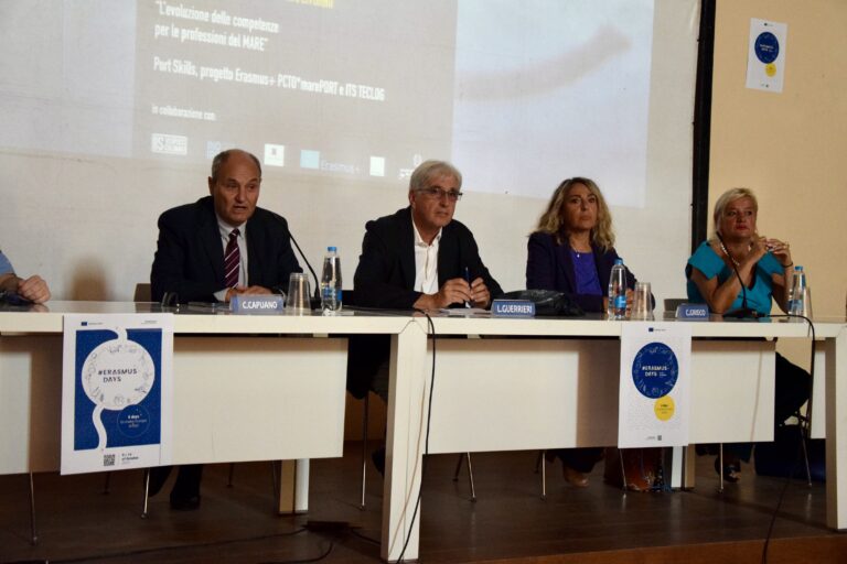 “Sono felice – aggiunge il presidente dell’AdSP- Mts Luciano Guerrieri – di essere qui a festeggiare queste idee entusiasmanti. Quando si mettono insieme realtà territoriali, anche diverse tra loro, tutto si muove nell’ottica di uno sviluppo del territorio. L’economia marittima è di importanza fondamentale per il nostro Paese, basti pensare che compone il 12% del Pil e che, a livello mondiale invece, il 90% del volume degli scambi avviene tramite navi. L’Italia possiede circa 8mila chilometri di coste, con ben 15 regioni che affacciano sul mare. Questo la rende una nazione che ha bisogno dei giusti meccanismi di funzionamento in ambito marittimo-portuale. Per stare al passo con i tempi si rende necessario creare un circuito virtuoso con le scuole perché i ragazzi possano conoscere i processi di cambiamento”. Presenti le imprese, i terminal, le agenzie marittime e le case di spedizione del porto di Livorno che hanno partecipato al progetto “Ports & Skills” nell’ambito del Programma Erasmus+ 2014-21.