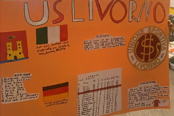 Durante uno dei momenti più significativi dello scambio, le insegnanti tedesche insieme ai ragazzi e alle ragazze della classe 6B hanno realizzato una sorprendente presentazione dedicata alla squadra dell'Unione Sportiva Livorno 1915. Formazione, classifica, curiosità e un affettuoso riferimento allo stadio Armando Picchi