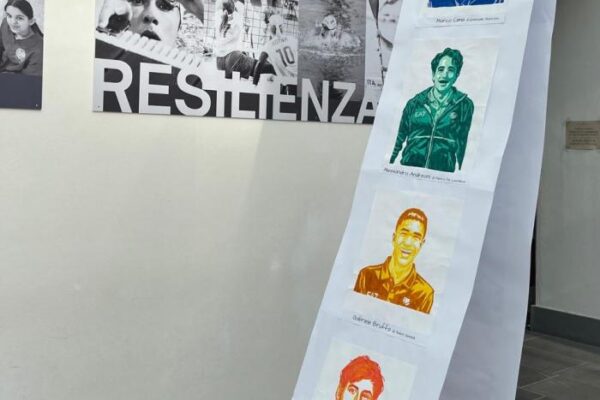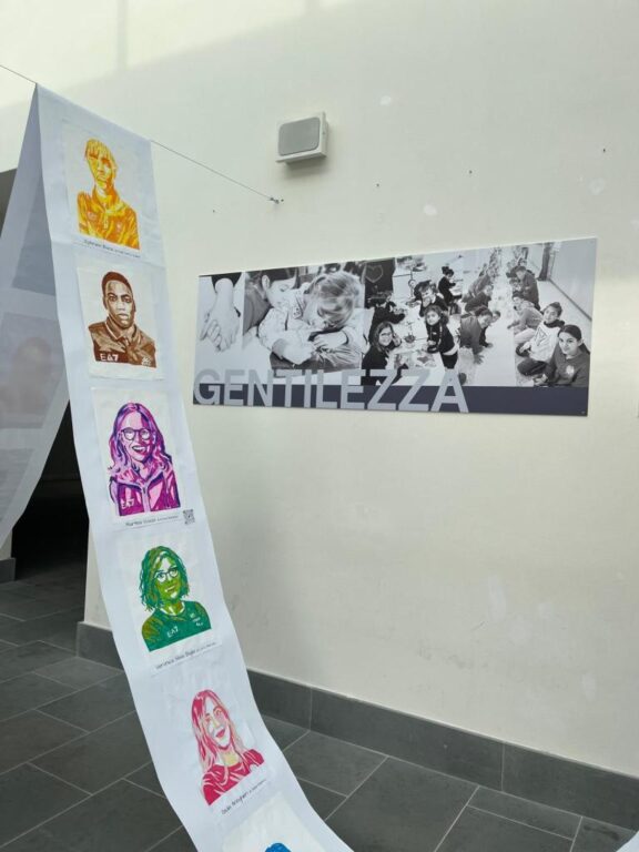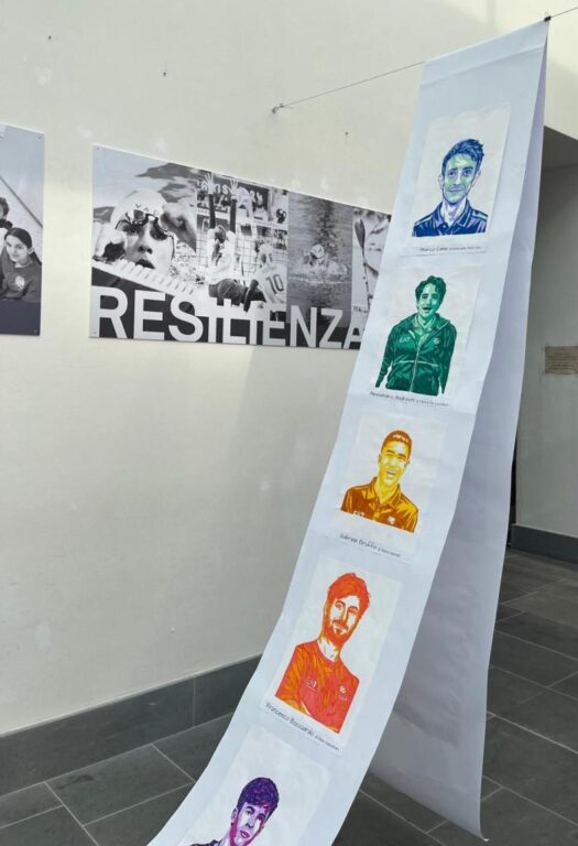 • Il Primo Piano – La Gentilezza: Qui il testimone passa ai più piccoli della Scuola dell’Infanzia e Primaria. Le loro opere indagano la gentilezza come gesto quotidiano e “collante sociale” che sostiene la resilienza stessa, creando un dialogo ideale con la forza atletica del piano inferiore.