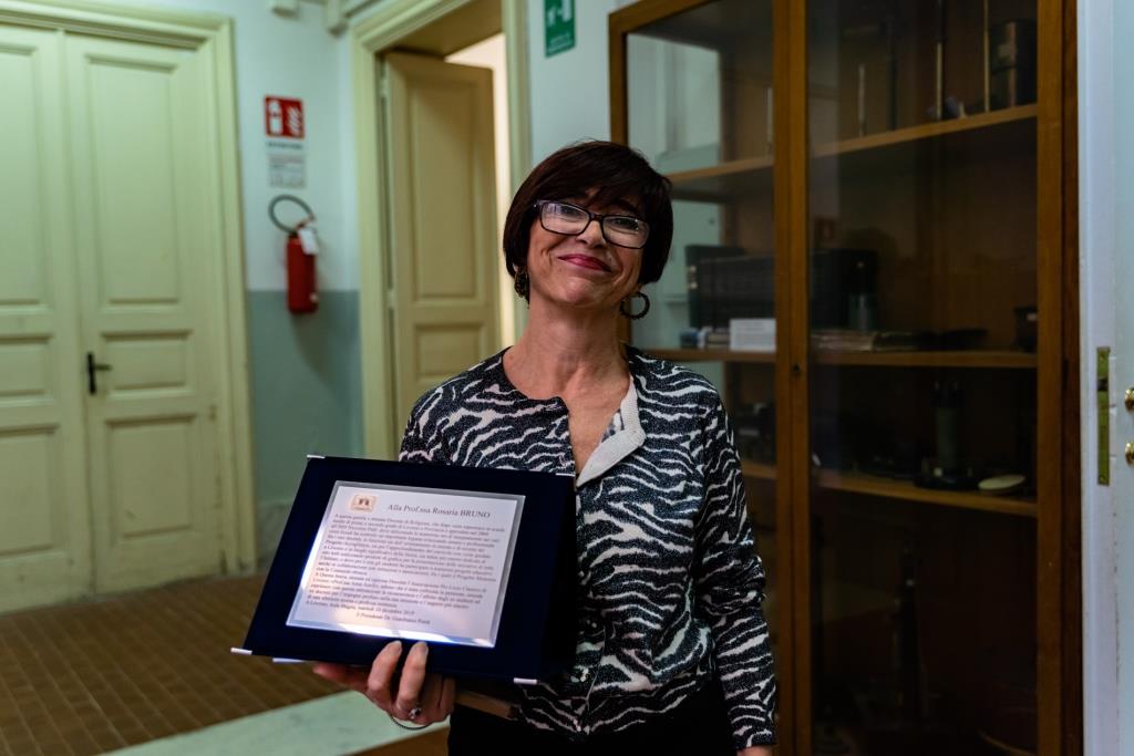 In conclusione, la cerimonia ha visto l’assegnazione di una targa di riconoscimento a Rosaria Bruno, ex docente dell’istituto oggi in pensione, per l’impegno e la passione con cui ha svolto il proprio lavoro negli anni passati.