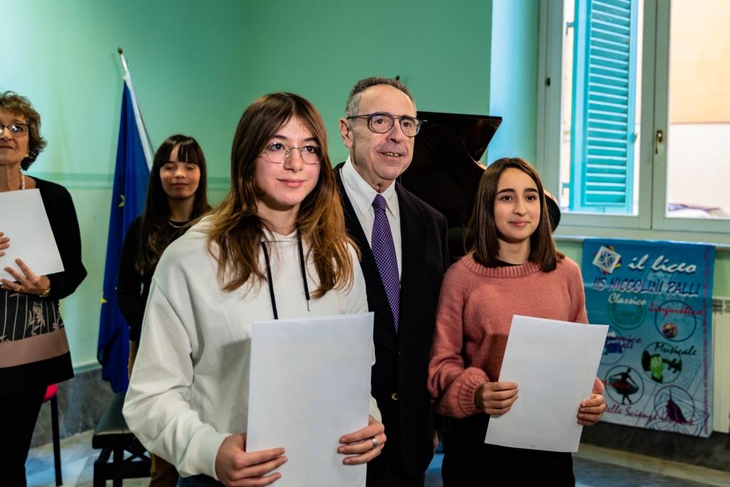 L’iniziativa, che si è svolta nella mattina di martedì 10 dicembre nell’aula magna dell’Isis Niccolini Palli, ha visto l’assegnazione di un premio ex aequo, consistente in due borse di studio del valore di duecento euro ciascuna, a due studentesse della prima classe del liceo classico vincitrici della prova di cultura impostata sul pensiero dell’ex presidente della Repubblica: Anna Carnemolla e Sara Turbati.