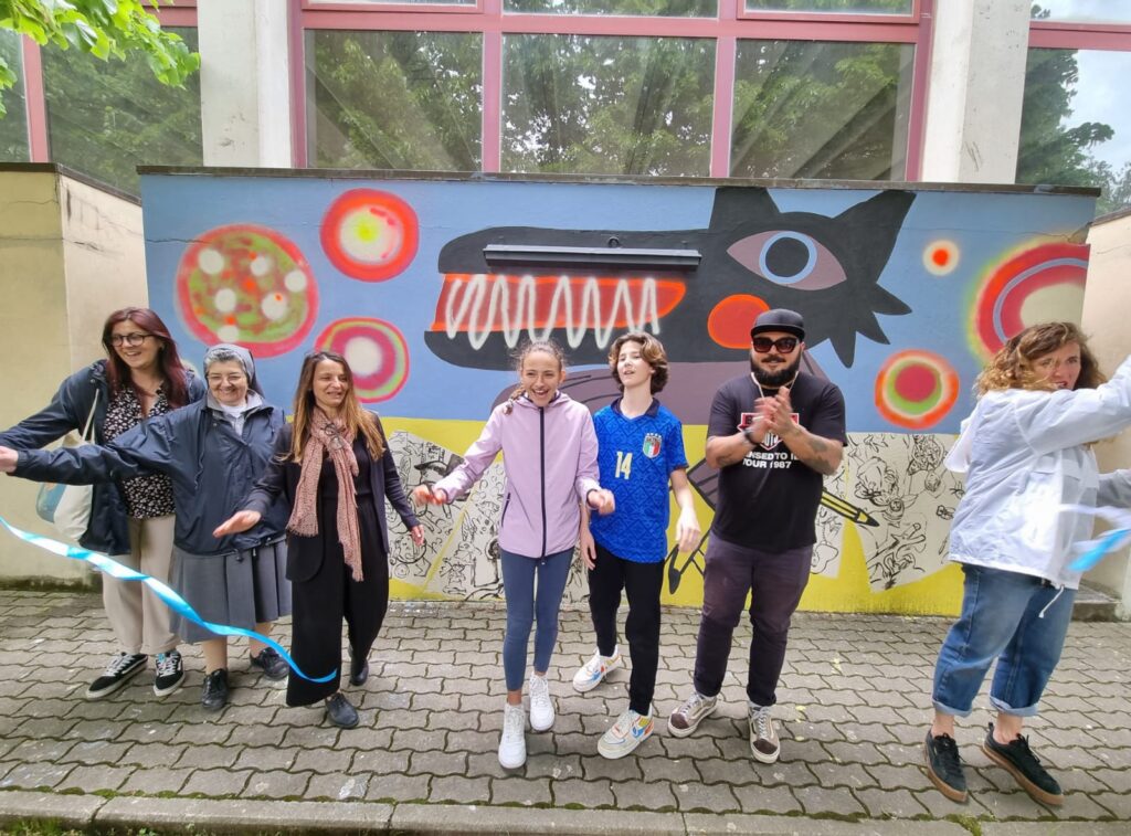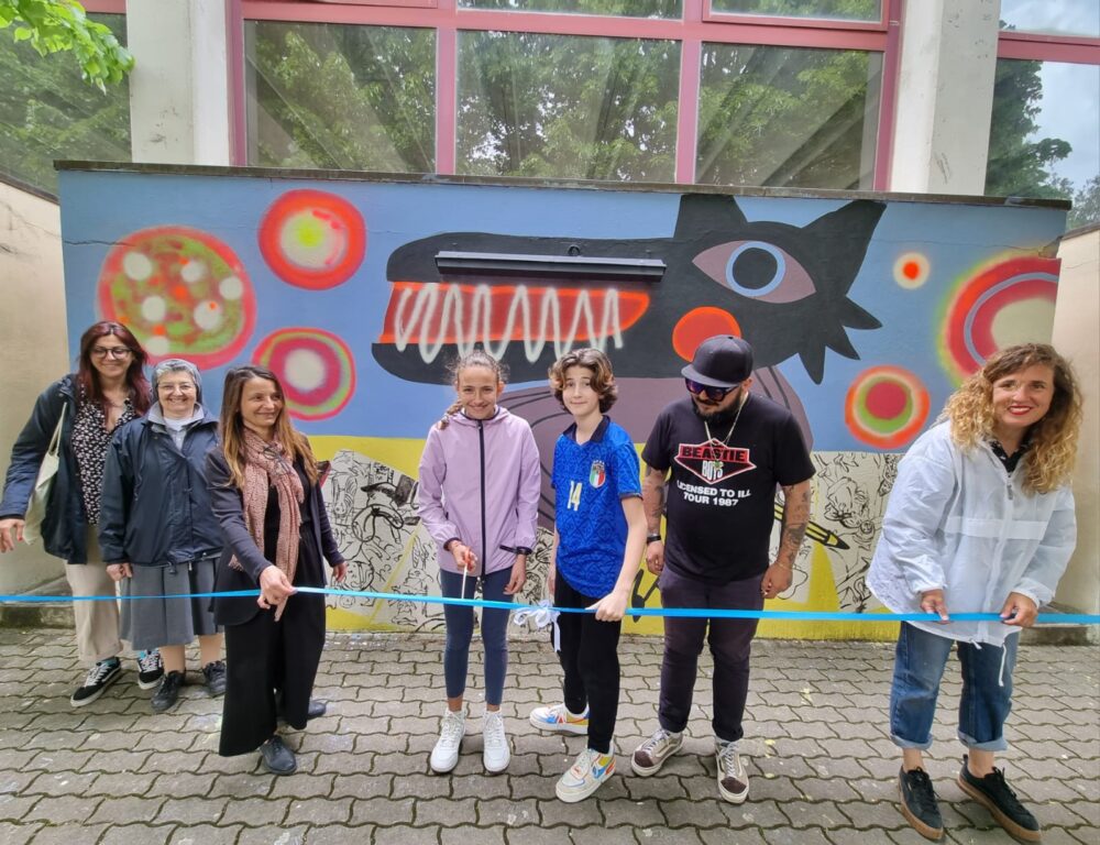 Si chiama “Siamo fiabe a lieto fine” ed è il titolo del murale inaugurato il 12 maggio alle 11.30 all’interno dell’istituto Santo Spirito, in corso Mazzini, del polo scolastico delle Figlie di Maria Ausiliatrice. Finanziato da Fondazione Livorno, il murale rappresenta il lavoro conclusivo del progetto “Se io fossi fiaba” che ha coinvolto la scuola primaria e secondaria di primo grado del polo scolastico salesiano nella “pedagogia della speranza” che il Covid, è stato spiegato dalla consueler filosofica, aveva annichilito. “Il murale – raccontano i due autori Michael Rotondi e Giulia Bernini che insieme sono gli Oblo goes to rounds – prende ispirazione dai disegni realizzati dagli studenti sulla base di illustrazioni storiche e contemporanee di fiabe che abbiamo portato loro durante i laboratori narrativi ai quali hanno partecipato gli studenti. Noi a nostra volta abbiamo poi “ripreso” gli elaborati più interessanti trasformandoli nel murale che vedete”. Nell’ambito del progetto “Se io fossi fiaba” nel pomeriggio del 12 maggio alle 16 alla Fondazione d’Arte Trossi Uberti verrà inaugurata la mostra degli elaborati realizzati dagli studenti. “Ringrazio la Fondazione che ha accolto e finanziato il progetto – ha spiegato Sara Merlo, la coordinatrice didattica della scuola primaria e secondaria di primo grado del polo – dando la possibilità di sviluppare un’iniziativa bella e importante come questa”.