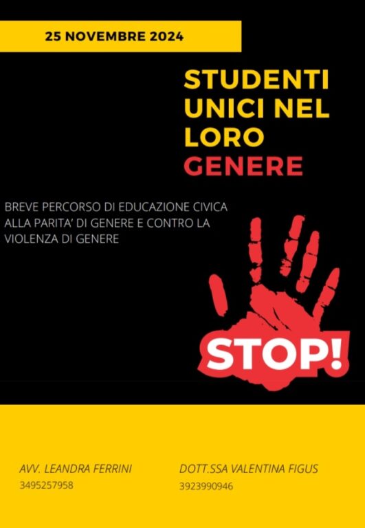 Il progetto Studenti unici nel loro genere è sostenuto dall’avvocata Leandra Ferrini e dalla Dottoressa Valentina Figus, psicopedagogista, e nasce con l’idea di sensibilizzare gli adolescenti sulla necessità di un impegno per mettere in luce il fenomeno della violenza di genere e attuare misure per prevenirlo e contrastarlo, fornendo loro gli strumenti per affrontare le proprie esperienze di vita in modo diverso, utilizzando un approccio positivo ed originale, libero da stereotipi. Il 25 novembre, in occasione della giornata internazionale per l’eliminazione della violenza contro le donne, alla scuola media Plesso Pazzini, facente parte dell’omnicomprensivo De Amicis di Livorno, si terrà il primo incontro che vedrà impegnati i ragazzi della terza e seconda media, sezione H. In tale occasione si approfondiranno i temi della violenza contro le donne e della parità di genere. Lo scopo è di insegnare agli studenti come riconoscere gli atti di violenza di genere e come reagire ad essi, suggerendo le modalità operative per chiedere aiuto e non sentirsi mai soli nell’affrontare tali eventi. Il progetto si concluderà il 10 dicembre in occasione della giornata internazionale dei diritti dell’uomo e prevede altri due incontri rientranti nei sedici giorni di attivismo contro la violenza di ogni genere.