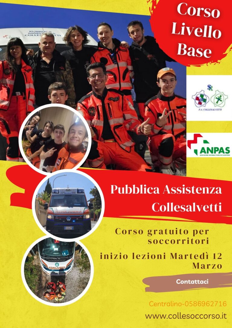 La Pubblica Assistenza di Collesalvetti organizza un nuovo corso gratuito per soccorritore di livello base finalizzato a formare volontari i quali apprenderanno le tecniche di primo soccorso in emergenza sanitaria e l’abilitazione all’uso del defibrillatore.