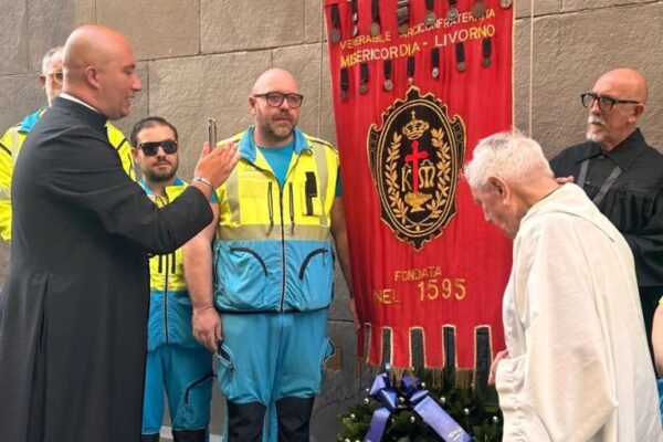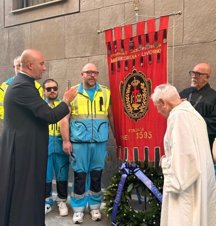 Giornata di celebrazioni e di festa, il 29 agosto, per la Venerabile Arciconfraternita della Misericordia di Livorno nel giorno del proprio Patrono, San Giovanni Battista. Nel pomeriggio – presente il direttore generale della Misericordia di Livorno, Gabriele Vannucci, il cappellano emerito don Giuseppe Coperchini, nonché il Labaro ed il Medagliere dell’Associazione – una folta rappresentanza di Fratelli, Sorelle e di dipendenti dell’Associazione ha preso parte alla cerimonia della deposizione di una corona d’alloro alla lapide che al secondo piano del civico 9 della centralissima via San Francesco ricorda l’anno di fondazione (1595) dell’Istituzione – che oggi ha la propria sede in Via Verdi – e quella che fu la sua prima “casa”. L’evento è stato preceduto dalla benedizione del neo Cappellano Maggiore dell’Istituzione don Matteo Giavazzi, recentemente nominato dal Vescovo Simone Giusti, seguita da un momento di preghiera. Purtroppo, e per la prima volta da quando la significativa e partecipata cerimonia è stata istituita, è venuta a mancare l’annuale disponibilità dell’autoscala del Comando Provinciale dei Vigili del Fuoco. La posa della corona è stata così resa possibile grazie all’apprezzato supporto dell’Impresa F.lli Dello Sbarba di Livorno. Poi, presso la chiesa di S. Barbara in Via Verdi, tutti presenti alla S. Messa in memoria del martirio del Santo, officiata da don Matteo. Nella circostanza, il cappellano ha voluto dedicare un momento di preghiera in suffragio di tutti i defunti Fratelli e Sorelle dell’Istituzione, tra i quali quelli più recentemente mancati, Calogero Cavataio, Massimiliano Saettini e Giuseppe Azzarito, quest’ultimo scomparso un anno fa proprio due giorni prima della ricorrenza. Parimenti, un momento di raccoglimento è stato dedicato anche ai due volontari della Misericordia di Terranuova Bracciolini (AR), Giulia Santoni e Gianni Trappolini, deceduti – con il paziente che trasportavano in ambulanza – nel terribile incidente sulla A1 dello scorso 4 agosto. Infine, la cena sociale trascorsa all’insegna della fratellanza, ha infine suggellato la giornata celebrativa di una antichissima realtà del mondo del volontariato, quale è la Misericordia di Livorno, che celebra peraltro, in questi mesi, i suoi 430 anni della fondazione, ovvero ben oltre quattro secoli di storia.