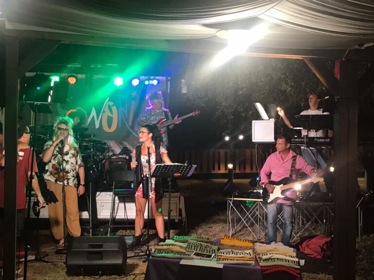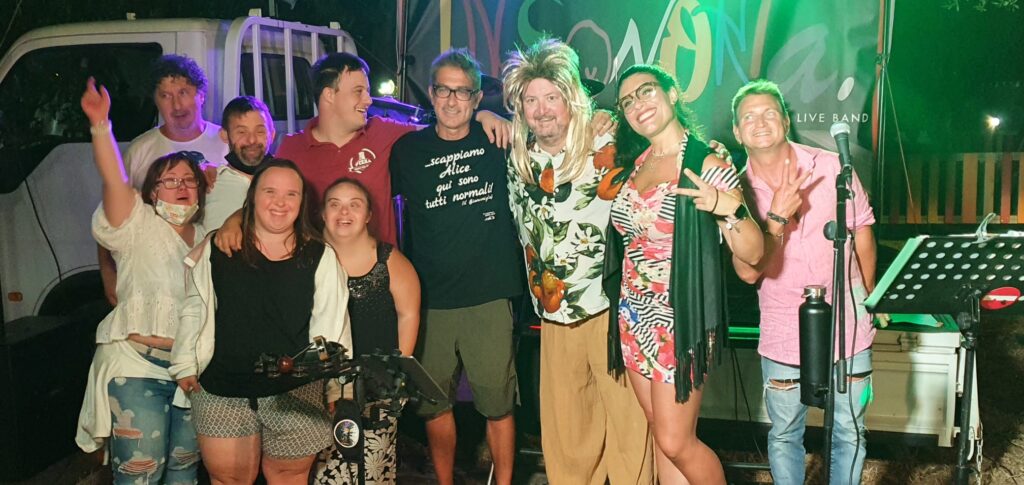 Il generoso impegno di Paolone, titolare del “Bocconcino” del Parc Levante, in realtà era cominciato molto prima con la ricerca e acquisizione degli sponsor che hanno messo a disposizione tutta la fornitura delle carni e dei salumi (Leopoldo Grassi, Polo Ristorazione, Fredditalia, Amadori, Glou glou, Nesti e Bonsignori, Morelli Services, Zona Market, panificio La Rinascita e Unicoop Tirreno) e il gelato finale offerto da Sammontana. Mentre a Veronica Fastame, una delle tante mamme impegnate nell’Associazione Italiana Persone Down, si deve il merito di aver pensato al vino, offerto dalla Tenute Argentiera e Guado al Tasso Antinori di Bogheri. Ma, si sa, non si vive di solo pane. Anche lo spirito ha bisogno di nutrirsi, soprattutto di gioia e allegria dopo tanta forzata astinenza. E all’esigenza ha splendidamente provveduto, non solo con la musica e le voci, ma anche con una brillantissima capacità d’intrattenimento, il gruppo “Insonoria” di Livorno composto da Marco Farano, Vanessa Gravante, Mirko Luschi, Rossano Natali, Massimo Simoncini, Giacomo Bernini. Gli organizzatori, provati ma felici per il grande successo della serata, hanno voluto ringraziare tutti dello straordinario impegno messo nell’iniziativa. E, oltre a quelli già citati, il nonno Mario. che ha curato tutta la parte foto-video della serata, i ragazzi della Cooperativa Mario, Marco, Edoardo, Paolo, Davide il barman, Federico, Giulia, Francesco, Valentina, Giorgio, le mamme e i babbi e tutti gli amici del Parco del Mulino, grandi volontari che hanno aiutato ad organizzare l’evento.