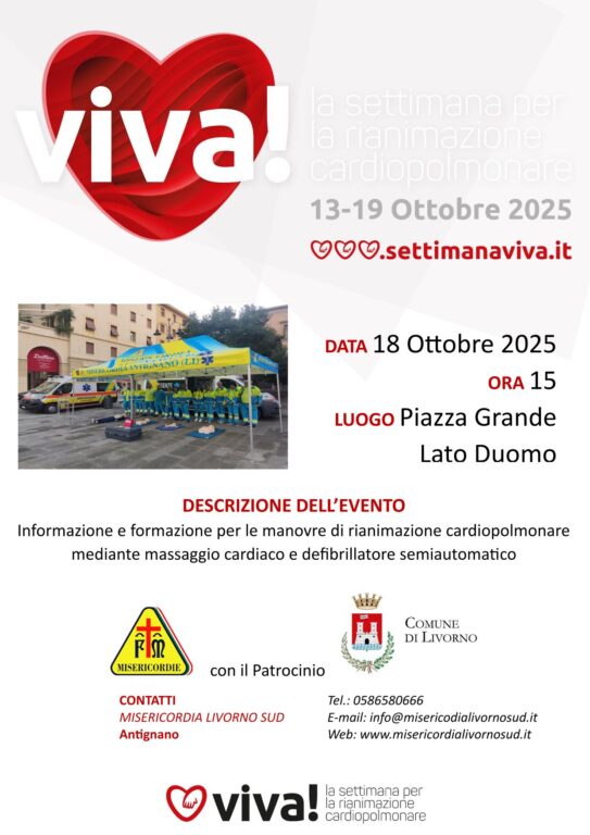 L’arresto cardiaco è uno dei più importanti problemi sanitari in Europa. Se i testimoni di un arresto cardiaco iniziano la rianimazione cardiopolmonare (RCP) prima dell’arrivo dell’ambulanza, le possibilità di sopravvivenza della vittima aumentano di due/tre volte rispetto ai casi in cui la RCP non viene iniziata. Nel 70% dei casi l’arresto cardiaco è testimoniato da qualcuno che può iniziare la rianimazione. Italian Resuscitation Council (IRC) ha raccolto con entusiasmo l’invito dell’Unione Europea istituendo dal 2013 “Viva! – la settimana per la rianimazione cardiopolmonare”. Seguendo gli ottimi risultati ottenuti negli ultimi anni, anche per il 2025 sono state avviate una serie di iniziative volte a realizzare “Viva!” attraverso il coinvolgimento delle Istituzioni preposte alla cura della salute dei cittadini. Quest’anno la settimana avrà luogo dal 13 al 19 ottobre e ha ricevuto i seguenti patrocini istituzionali: Senato della Repubblica, Camera Dei Deputati, Ministero dell’Istruzione e del Merito, Ministro per lo Sport e i Giovani e Sport e SaluteSpA. In occasione della campagna, attraverso eventi pubblici ed eventi istituzionali, l’obiettivo è la realizzazione di momenti ed attività dedicati al pubblico volti a informare le diverse fasce della popolazione italiana circa la rilevanza dell’arresto cardiaco improvviso e l’importanza di conoscere e saper eseguire le manovre che possono salvare la vita di coloro che ne sono colpiti: manovre semplici, sicure, che chiunque di noi, anche senza una preparazione sanitaria specifica, è in grado di attuare. Vista l’importanza della tematica e importanti traguardi raggiunti dal 2013 ad oggi, è nostra intenzione assicurare alla campagna particolare rilevanza mediatica con la possibilità di coinvolgere testimonial e rappresentanti delle Istituzioni. La campagna è realizzata in collaborazione con partner Viva!, Associazione Nazionale Pubbliche Assistenze (ANPAS), Confederazione Nazionale delle Misericordie d’Italia, Croce Rossa Italiana (CRI), numerosi altri enti e associazioni e Società scientifiche, combinando eventi “a distanza” (utilizzando social network, strumenti digitali, videolezioni, ecc.) e attività che possano coinvolgere qualunque fascia di età in maniera attiva, anche allestite in spazi pubblici e all’aperto. Gli eventi vengono aggiornati progressivamente sul sito ufficiale della campagna https://www.settimanaviva.it/eventi.
