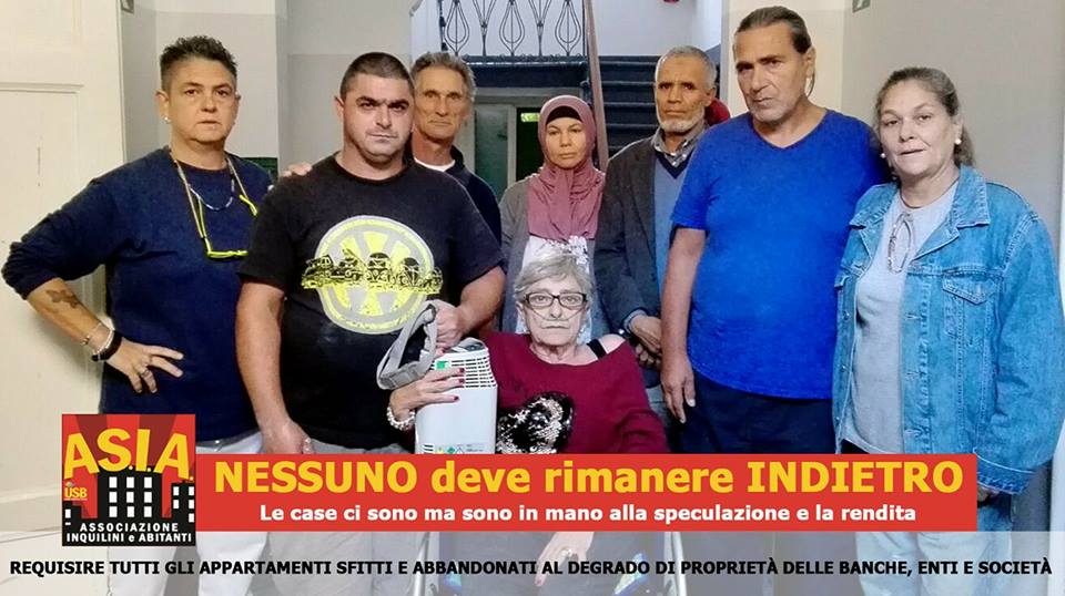 “Anche in questo caso la mancanza di alternative – continua Asia Usb- ha preso il sopravvento. Rossana, questo il nome della pensionata, era stata sfrattata dall’abitazione in cui viveva, qualche settimana fa, nonostante la gravità del suo stato di salute. Con la sua pensione minima non è riuscita a trovare un altro alloggio e si è trovata letteralmente per strada insieme al figlio disoccupato. All’interno del convitto, insieme a lei, ci sono altre famiglie, quattro italiane e una straniera da anni residenti in Italia con diversi minori. Cosa si aspetta a bloccare gli sfratti? – si domanda Asia Usb – Cosa si aspetta a dare seguito alla delibera consiliare per la requisizione degli immobili privati sfitti e abbandonati?”.