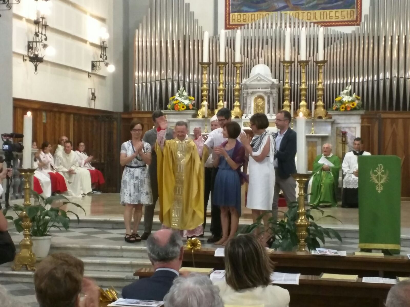 Una chiesa gremita anche di bambini che Don Medori ha voluto con sé sull’altare per celebrare il rito eucaristico della Comunione. E poi la sorpresa più bella che Beppino del ristorante “La Barcarola” ha tessuto e confezionato con passione e dedizione. Una targa di Papa Francesco per i tanti anni a servizio di Cristo e della Sua Chiesa.