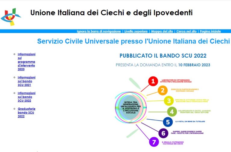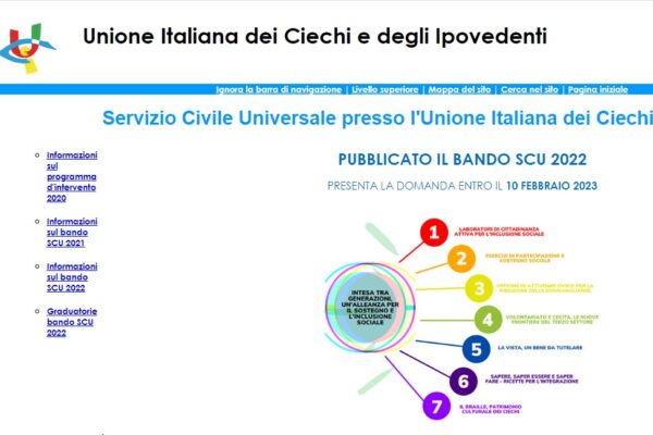 Nell’ambito dell’ultimo bando per il Servizio Civile Universale l’Unione Italiana Ciechi e Ipovedenti – Sezione Territoriale di Livorno è pronta ad accogliere 4 volontari per l’esecuzione del programma di intervento “Intesa tra generazioni, un’alleanza per il sostegno e l’inclusione sociale”. Scadenza domande 10 febbraio 2023 alle 14.