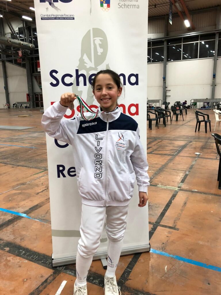 Weekend ricco di impegni e soddisfazioni per l’Accademia della Scherma di Livorno che era impegnata su molti fronti su tutto il territorio nazionale. Per quanto riguarda la categoria Gpg i fiorettisti portati in pedana dal maestro Dario Finetti si sono fatti ben valere nella prova interregionale dove tutto il gruppo dei più piccoli (2008-2011) si è dimostrato in crescita. Gli acuti sono arrivati in primis da Anita Betti, arrivata seconda tirando molto bene con l’atteggiamento giusto fin dall’inizio della gara. Altre belle prestazioni per Carlotta Coli salita sul gradino più basso del podio nella categoria Giovanissime e per Lucrezia Menici che strappa un quinto posto nella categoria Bambine. Altra gioia in famiglia Menici dove il gemello di Lucrezia, Leonardo, si è guadagnato un bronzo nella categoria maschietti. “Sono molto felice di quanto hanno dimostrato in pedana considerando la giovanissima età e le prime esperienze ufficiali con il fioretto in mano”, ha commentato Finetti”.