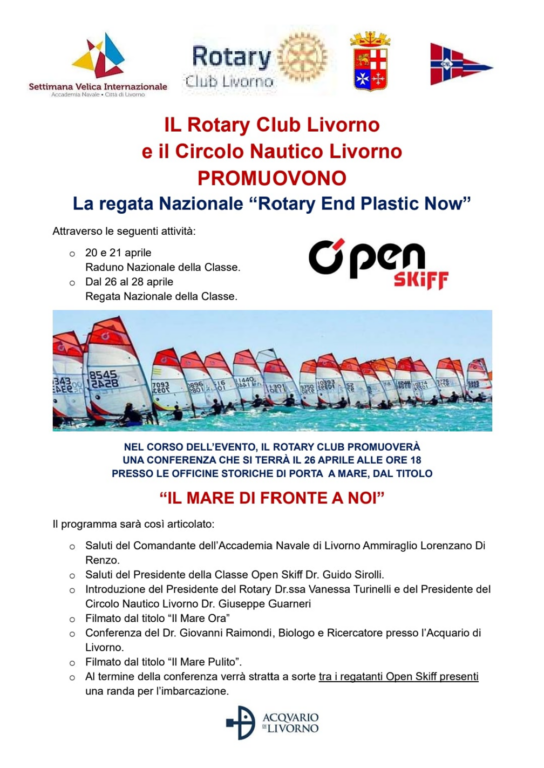 Novità di quest’anno è il patrocinio del Rotary Club Livorno che ha voluto imprimere alla manifestazione la sua vocazione al rispetto del mare e della natura organizzando una conferenza che si svolgerà nei nuovissimi e prestigiosi ambienti delle Officine a Porta a mare il 26 aprile alle ore 18 e che è rivolta  principalmente ai giovani La conferenza sarà tenuta da  Giovanni Raimondi.