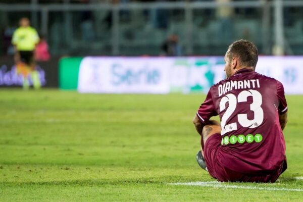Un’icona del calcio scanzonato e giocato bene, un idolo per tanti con quel 23 sulla schiena. Quella faccia un po’ così, sincera e canzonatoria allo stesso tempo e quel mancino che innamora. Il suo nome è Alessandro ma per tutti Alino. E il cognome, Diamanti, è già poesia per uno che trasforma in oro, anzi in pietre che luccicano, ogni pallone. Per il popolo amaranto “Alino” è stato gioia e delizia ed è stato un vero colpo al cuore vederlo prendere la sua valigia in direzione “terra dei canguri”. Anche laggiù in Australia, down-under, ha fatto impazzire il pubblico con le sue giocate e i suoi gol da cineteca. Sulla sua seguitissima pagina Instagram, nella mattina di lunedì 24 aprile, l’annuncio che i tanti amanti del pallone non avrebbero mai voluto leggere: “Sabato, dopo 23 anni, sarà la mia ultima partita”…