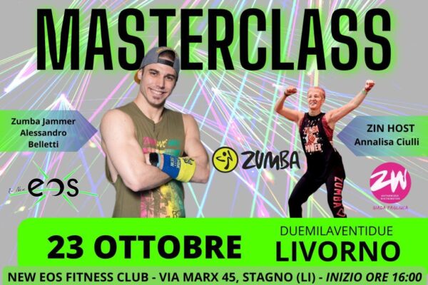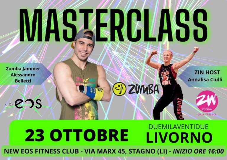Domenica 23 ottobre 2022 a Livorno alle 16 presso la Palestra New Eos Fitness Club arriva la Masterclass di Zumba con lo Zumba Jammer Internazionale Alessandro Belletti.