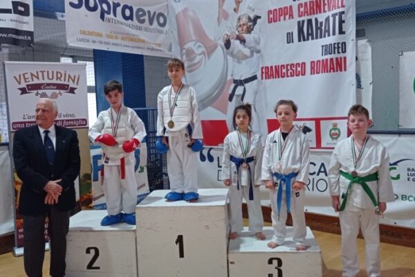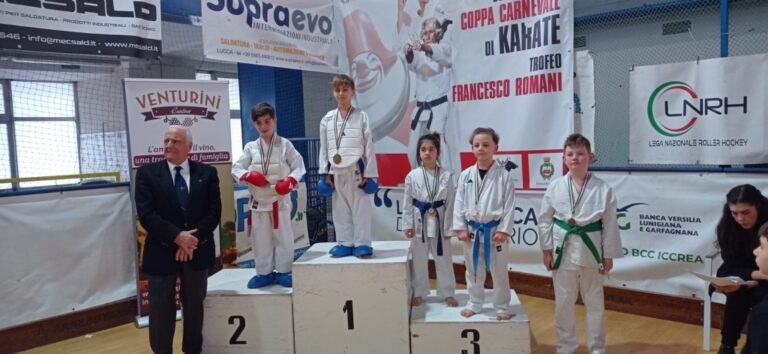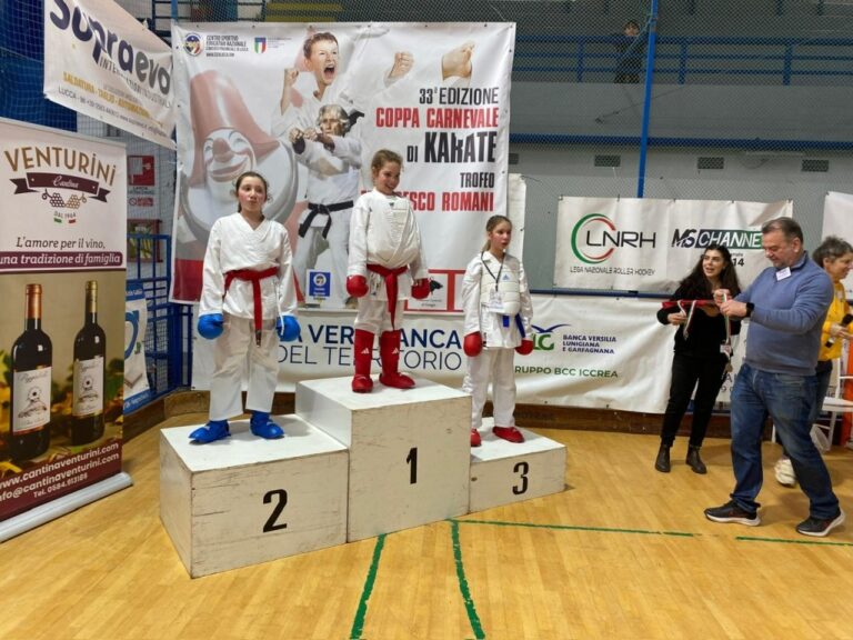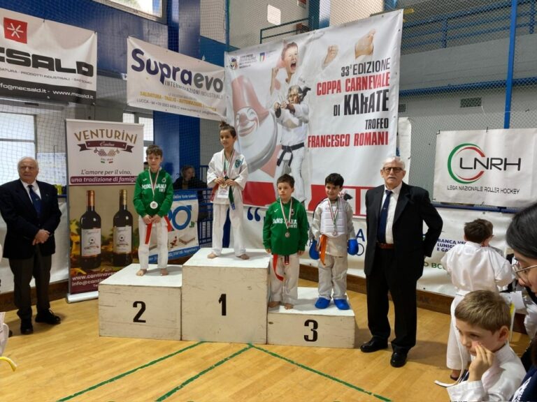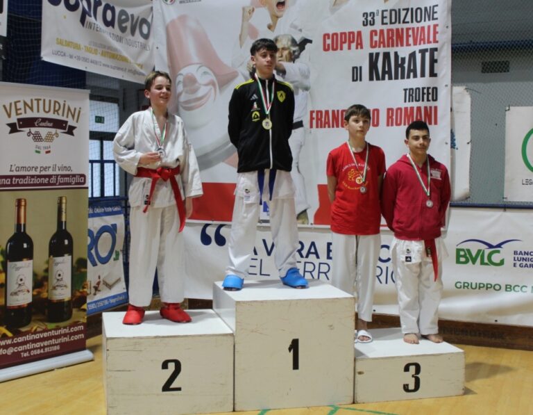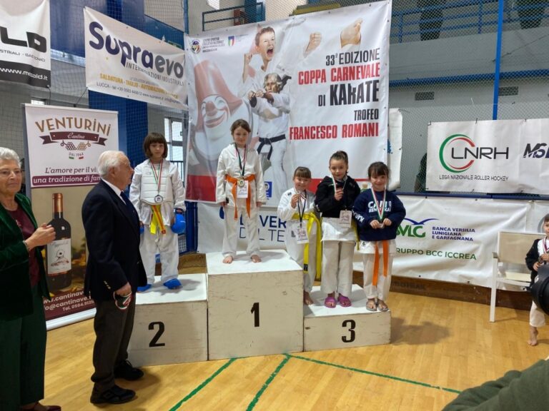 Un altro importante risultato di squadra dell’Accademia dello Sport di Livorno al 33° Trofeo Carnevale di karate, gara organizzata dal Comitato Regionale e Comitato di Lucca Csen (Ente di promozione numero 1 in Italia) e coordinata dai responsabili regionali Alessio Magnelli, Fabio Castellucci. 54 le società partecipanti provenienti da mole regioni tra cui Liguria, Emilia Romagna e Toscana, con oltre 1250 iscrizioni pervenute agli organizzatori. Gli atleti dei Maestri Alessandro Fasulo, Carmelo Triglia e Alessio Magnelli hanno portato a casa ben 34 medaglie con soli 21 atleti in gara. Grazie a questi risultati l’Accademia dello Sport è risultata seconda nella classifica generale per società.