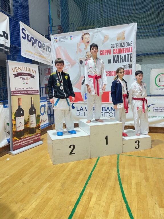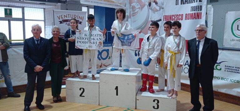 Nelle specialità pre agonistica di prova tecnica palloncino 1° posto per Ginevra Cialandroni, Jacopo Capperi, Giusy Grimaldi, 2° posto per Geremia Agrusa, Nicole Ruotolo, 3° posto per Enea Agrusa, Cosimo Ceccanti, Edoardo Fasulo, Giulia Tisaianu. Nel Kata (forma) pre agonisti 1° posto per Geremia Agrusa, Giusy Grimaldi, Nicole Ruotolo, 2° posto per Cosimo Ceccanti, Jacopo Capperi, Giulia Tisaianu, 3° posto per Enea Agrusa, Clara Morini, bene anche la prova di Francesco Morini. Nel kumite (combattimento) Under10 e Under12 1° posto per Enea Agrusa, Cosimo Ceccanti, 2° posto per Giusy Grimaldi, Nicole Ruotolo, Mattia Valenzisi, 3° posto per Jacopo Capperi, Giulia Tisaianu. Grandissimi risultati anche nelle categorie agonistiche, nel kumite oro per Greta Gigliucci cadetti verdi/blu -68+68kg, Leonardo Magnelli esordienti marroni/nere -53kg, Andrea Ulivari esordienti verdi/blu -53kg, Nicolas Pietroni cadetti marroni/nere -52kg, argento per Melissa Cialandroni esordienti marroni/nere -47kg, Michele Tassan cadetti marroni/nere -52kg. Per il kata agonistico oro di Mirko Agrusa Master verde/blu, argento di Gabriele Faldelloni master marroni/nere e Marco Bini Master marroni/nere. Grande soddisfazione per tecnici e presidente per l’ennesimo risultato della società labronica orami lanciata da anni nel panorama regionale, nazionale ed internazionale con atleti che stanno calcando i tatami di tutto il mondo in Open Internazionali e nell’élite del karate con la Coppa del Mondo Wkf già disputata con le tappe di Tbilisi (Georgia e Larnaca (Cipro) con gli atleti Matilde Gronchi, Nicolas Guelfi e Emanuele Magnelli.