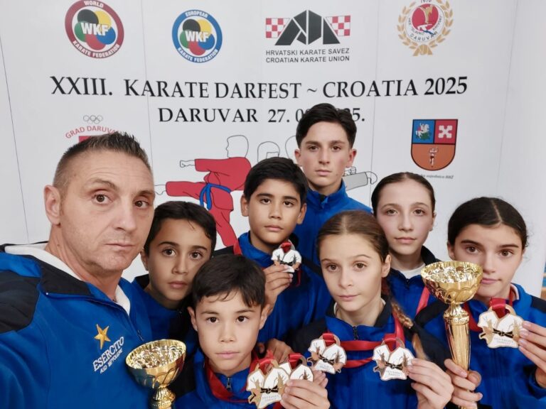 Oltre 1.700 chilometri di soddisfazioni per la Asd Esercito – 187 Folgore di Livorno, che ha preso parte con il proprio settore giovanile al prestigioso “XXIII° Karate Darfest” a Daruvar (Croazia), evento internazionale che ha visto la partecipazione di numerose delegazioni europee. Un viaggio sportivo, formativo e identitario: i folgorini – così vengono affettuosamente chiamati i giovani atleti del club livornese – si sono distinti nella specialità Kumite (combattimento a contatto controllato), portando a casa un medagliere ricco e significativo.