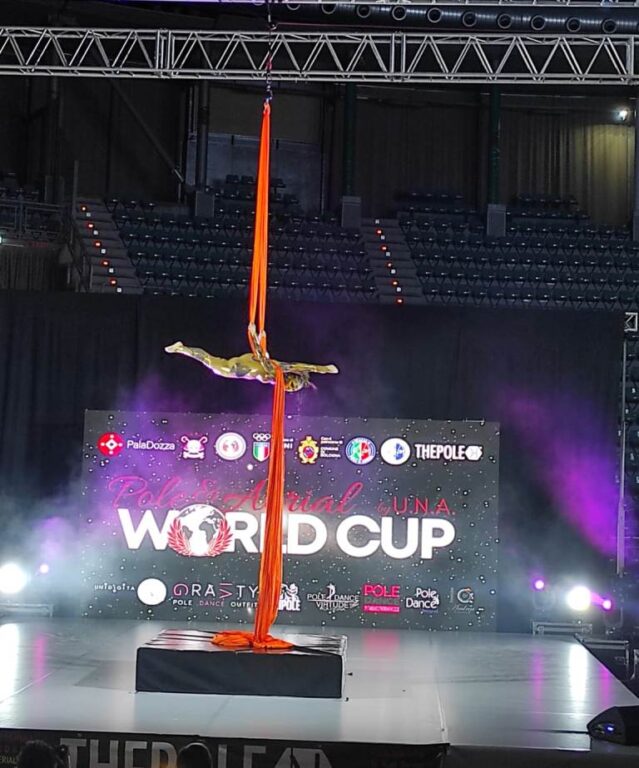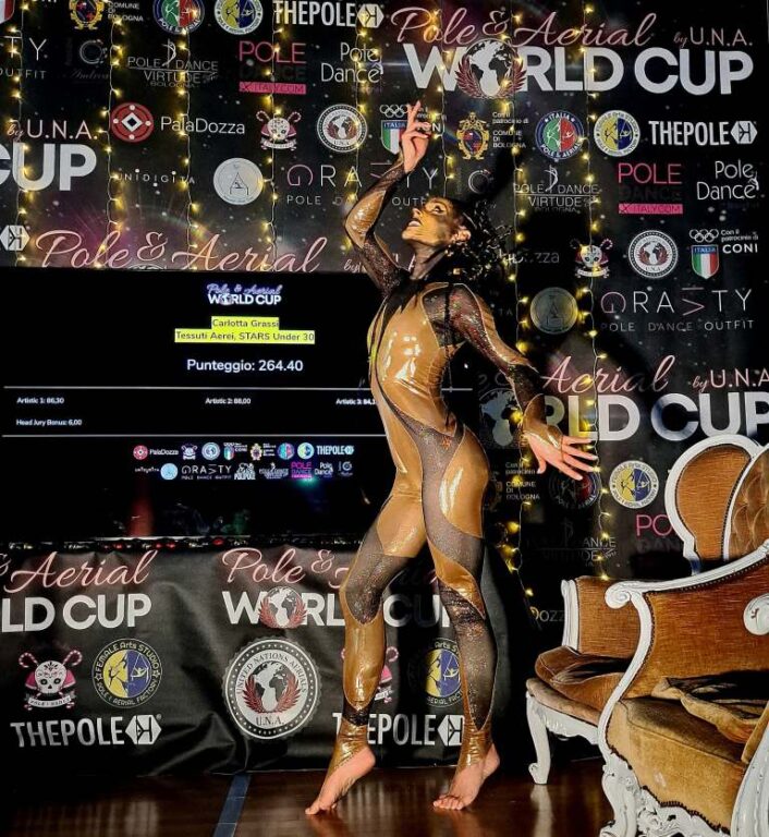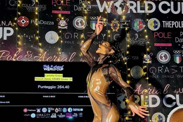 “E’ un risultato che non mi aspettavo. Quando mi hanno invitato sul palco per la premiazione ero negli spogliatoi”. Carlotta Grassi, 27 anni a dicembre, insegnante alla Solidago Fitness a Calambrone, è la neo vice campionessa mondiale di aerial silks (tessuti aerei), categoria Stars, titolo conquistato il 3 dicembre ai campionati mondiali di pole e aerial sports al PalaDozza di Bologna. Iniziato per gioco nel 2017, Carlotta a maggio è arrivata seconda ai campionati italiani e da vice campionessa italiana ha partecipato al mondiale diventando come detto vice campionessa, conquistando i due prestigiosi piazzamenti con la stessa coreografia danzata a terra e sospesa. “Ringrazio Giacomo Fratini, livornese campione mondiale di pole dance, per i miglioramenti che mi hanno permesso di performare ancora meglio ieri a Bologna. Sono molto soddisfatta. Amando la mitologia greca mi sono esibita interpretando il personaggio della medusa. Prossimi impegni? Continuare su questa strada e allenare i miei ragazzi della squadra Flying Sugar (che il pubblico potrebbe ricordare per averli apprezzati a Straborgo in estate, ndr) per cercare di portarli più in alto possibile”.