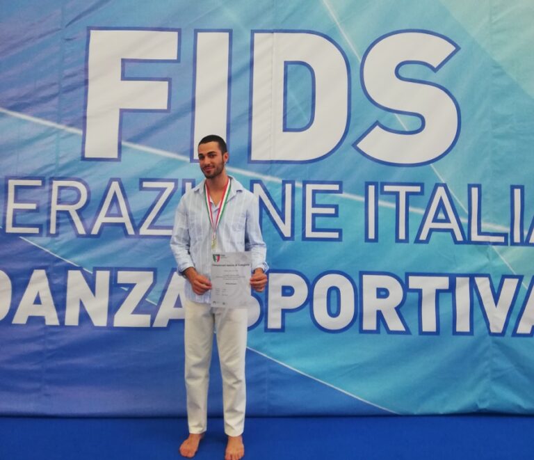 E' lui il portacolori della società Livorno Danza Maestra Filippi Asd che si è classificato al primo posto dopo una bellissima interpretazione di show dance nella categoria over 17 classe A