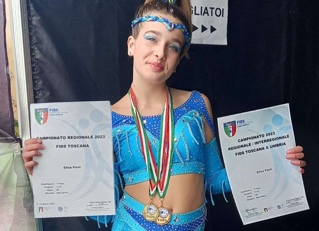 “In bocca al lupo Elisa, sarà un’esperienza che porterai con te tutta la vita. Divertiti”. L’in bocca al lupo è di quelli speciali e arriva dai genitori Marcella e Gianluca, dalla sorella Elena, 21 anni, e dal fratello Lorenzo, 12 anni, della 14enne livornese che, accompagnata dalla insegnante Dania Salvini e dalla sorella, il 21 giugno da Pisa volerà a Chomutov in Repubblica Ceca dove dal 21 al 26 giugno parteciperà con la nazionale italiana ai mondiali di disco dance. Fresca campionessa juniores ai campionati italiani assoluti Fids (Federazione italiana disco dance) e campionessa regionale, l’atleta livornese della Poker D’Assi Ballet di Firenze con “base” a Livorno a Spazio Danza, si esibirà due volte: il 22 giugno in gruppo e il 24 singolarmente. “Elisa è determinata – prosegue la mamma – è il suo primo mondiale, con la speranza che ce ne potranno essere altri, e sa quanti sacrifici ha fatto e sta facendo per portare avanti la scuola e lo sport che ama. Specialmente in questi ultimi mese che l’hanno vista spostarsi per gli allenamenti tra Genova, La Spezia e Firenze. Siamo tutti fieri di lei. Come ha iniziato a ballare la disco dance? Per caso. A 6 anni cercavamo uno sport da sperimentare e da allora sta continuando”. Con ottimi risultati.