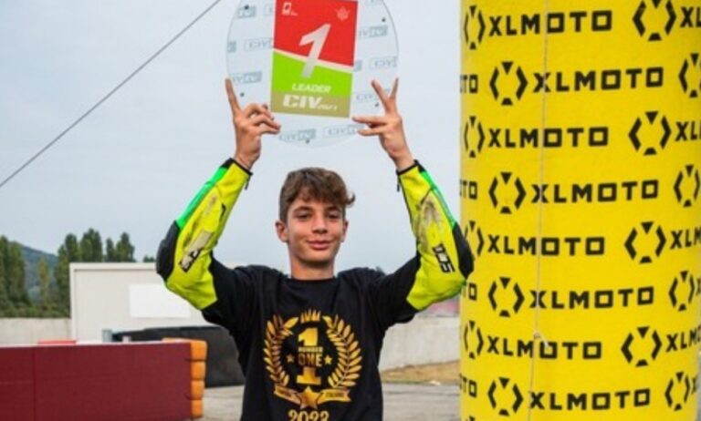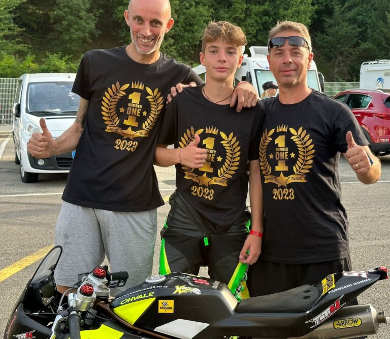 Il motociclista livornese di 15 anni Gabriele Padovani, studente di seconda superiore dell’Iti, porta a Livorno il titolo di campione Italiano Ohvale junior superstar 190gp2. Ecco il suo commento-cronaca della gara: “Varano, circuito Riccardo Paletti, ultimo round del Campionato Italiano Junior 2023 categoria Ohvale 190gp2. Tre giorni di splendido sole. I turni di prove mi vedono sempre nelle prime posizioni e dopo diverse regolazioni sulla moto, il feeling migliora sempre di più ottenendo il secondo tempo in qualifica, ma soprattutto un buon passo gara. Domenica mattina ultimi ritocchi per il warm-up e sono pronto per gara 1. Ci schieriamo in pista e via partiti, scatto bene dalla casella ma un problema al cambio mi fa retrocedere in quart’ultimo posizione. Alla prima curva, non mi perdo d’animo, comincio a spingere forte e sorpasso dopo sorpasso in pochi giri mi riprendono la seconda posizione fino al traguardo. Bene 20 punti presi, ma per diventare campione Italiano mi servono ancora 3 punti, quindi tutto rimandato a gara 2. Ore 16:20 mi preparo a schierarmi in griglia per l’ultima manche della stagione. Via, parto bene, tutto fila liscio ma dopo una bella bagarre, un pilota fa una brutta caduta e la direzione gara espone la bandiera rossa. Rientriamo in corsia box dove ci danno una nuova procedura di partenza. Al via conservo la 2° posizione fino al traguardo senza rischiare niente. Finalmente posso esultare e liberare tutte le mie emozioni, ce l’ho fatta sono il nuovo campione italiano 2023 categoria superstar. Volevo ringraziare tutte le persone che mi sono state vicine in questi anni, gli sponsor, che senza non potrei fare questo bellissimo sport, il mio meccanico Stento e soprattutto la mia famiglia che crede in me e mi supporta sempre.