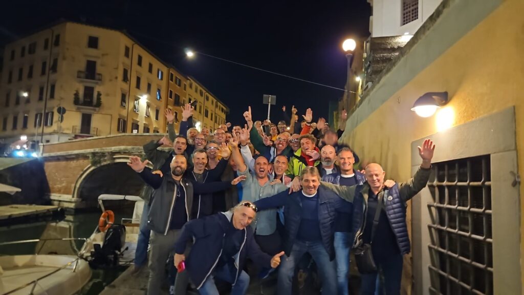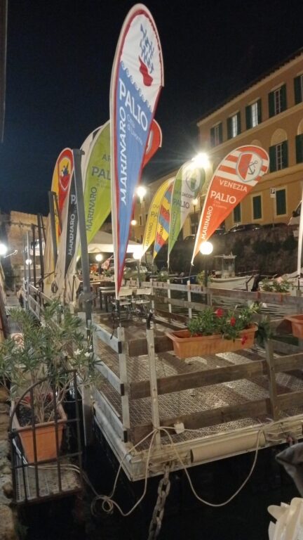 Ad organizzarla è stato il presidente del Salviano Alessio Marra con la collaborazione di altri ragazzi e del comitato Palio Marinaro che ha prestato le vele di tutti i rioni che Marra ha poi sistemato sulla chiatta del ristorante come biglietto da visita della tavolata intorno alla quale, all’interno del ristorante Le Botteghe, si sono seduti una cinquantina di ex vogatori anni ’80 ’90 e 2000. “E’ stata una bellissima, bellissima serata – spiega Marra che ringraziamo per la disponibilità – tra ragazzi un po’ cresciuti, diciamo, che ha permesso di tenere viva l’attenzione del mondo remiero. Un grazie a tutti i partecipanti”. La pagina Instagram Gare Remiere ha dedicato un post alla cena.