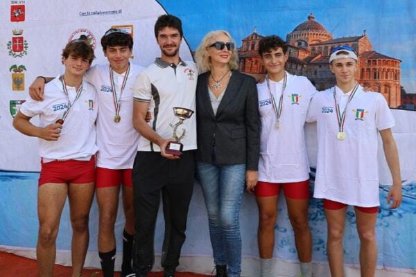 A distanza di un mese dalla conquista del titolo italiano al campionato di società sulla classica distanza dei 2000 metri, l’equipaggio rimane quindi sul tetto d’Italia anche sulla distanza dei 6000 metri vincendo domenica 20 ottobre nel Canale dei Navicelli a Pisa. L’equipaggio ha condotto una gara impeccabile, imprimendo un colpo efficace fin dalle prime palate e riuscendo addirittura a chiudere la gara in crescendo con il tempo di 21 minuti e 21 secondi. Medaglia d’argento per l’ottimo equipaggio dell’Armida di Torino, mentre il bronzo è andato ai Canottieri Arno di Pisa. Risultati che premiano il loro impegno costante, ma che vanno ascritti anche al giovane allenatore Edoardo Benini che solo da un anno si è impegnato nel ruolo di coach, accompagnando questi ragazzi verso due titoli italiani e una medaglia d’argento. Questo successo è frutto di un allenamento vincente, di una tecnica efficace e, non da ultimo, di un atteggiamento motivante dei singoli e del gruppo. La stagione 2024 si chiude quindi con ampia soddisfazione per il canottaggio livornese targato Vigili del Fuoco Tomei. La squadra è riuscita a salire sul podio più volte nei campionati delle diverse categorie, dai pararowing, ai senior, fino ad arrivare ai master e alle gare internazionali come la Coupe de la Jeunesse. Sempre nelle gare valide per il Campionato Italiano hanno gareggiato Alberto Magagnini ed Enrico Sabatini nel doppio Under 19, giunti sesti al traguardo. Nelle gare riservate al canottaggio giovanile, hanno fornito una convincente prova anche le ragazze Marta Ceccatelli, giunta quarta nel quattro di coppia cadette misto con Limite sull’Arno, e Ginevra Cecconi, livornese che ha gareggiato nel 4 senza della Società Velocior di La Spezia.