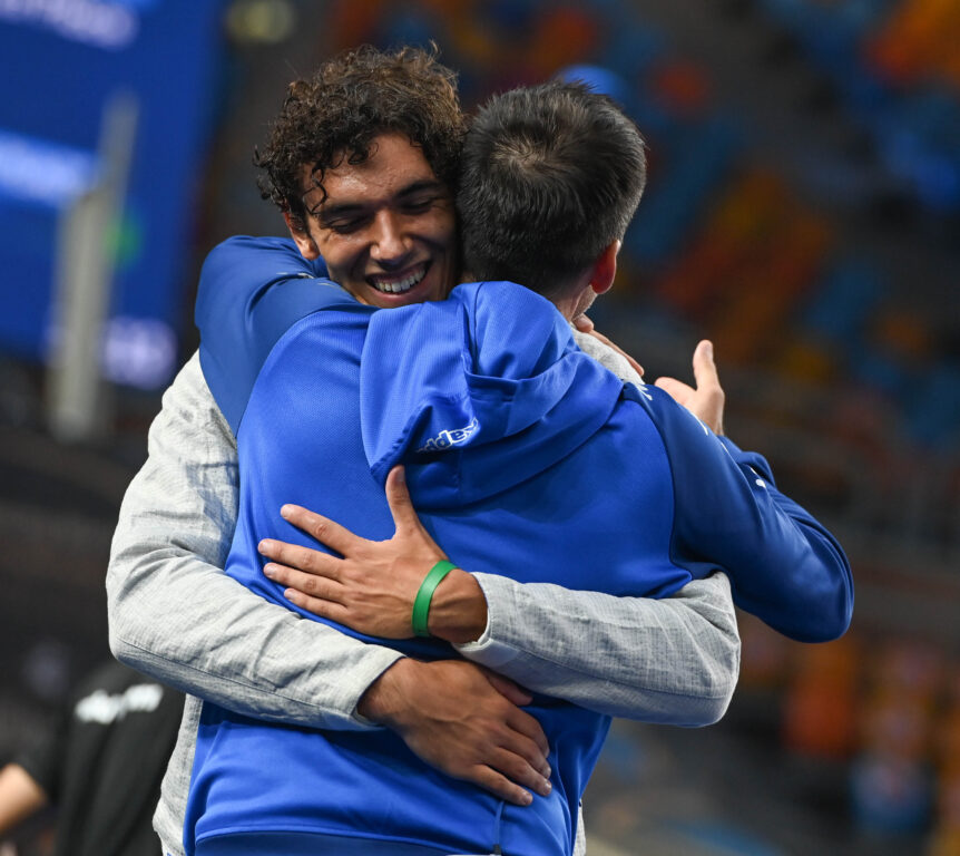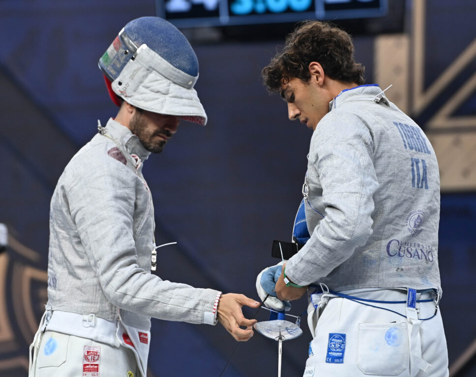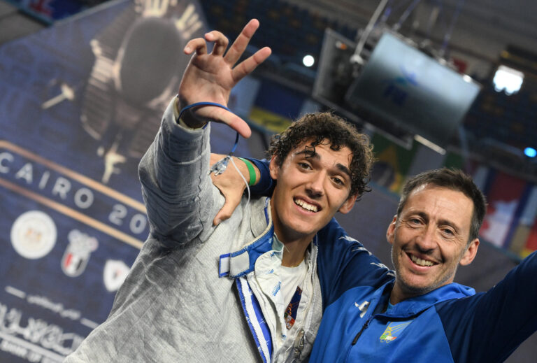 Una prestazione fantastica che mette la ciliegina sulla torta di un mondiale da sogno per il livornese cresciuto all’ombra del Circolo Scherma Fides. A bordo pedana l’altro livornese, il cittì azzurro Nicola Zanotti.