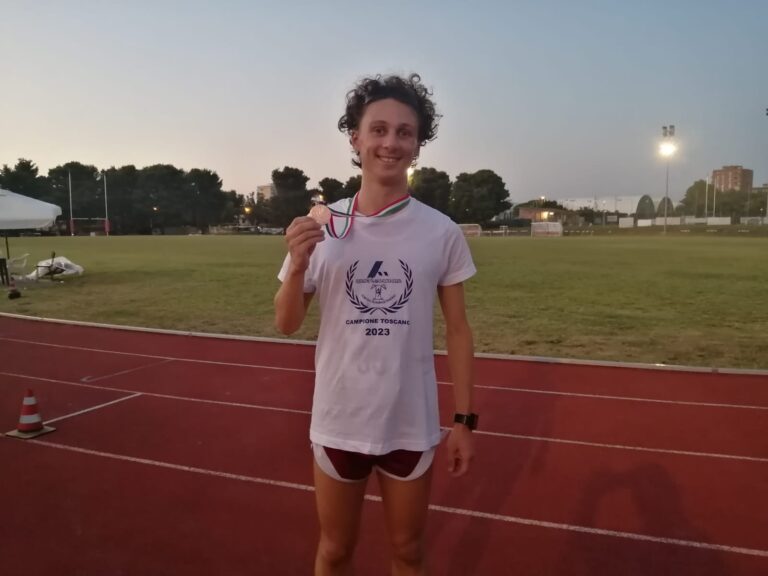 A Pistoia nella prima giornata che assegnava i titoli Margherita Voliani mette a referto un eccellente tempo nei 1.500m in una gara corsa da front runner che chiude in un gran 4’29″74, crono che le vale il titolo toscano assoluto e il record societario juniores. Nei 100m invece Michela Barotti corre ancora sotto i 12 secondi la batteria in 11″99 mentre in finale chiude in 12″02 vincendo il titolo toscano promesse. Per Fabiola Caruso nel martello arriva un lancio da 52,08m, che le vale il titolo. Titolo toscano della 4×100 per la formazione allievi con Noya-Bottai-Giovinazzo-Felicetti che siglano il primato della staffetta correndo in 43″92. Sul podio anche Samuele Baldi che sigla lo stagionale e record societario promesse nel lungo atterrando a 7,19m, classificandosi secondo, mentre una grande Caterina Da Mommio torna a volare nel lungo. Eguaglia la seconda prestazione di sempre, datata 2013, balzando a 5,70m. Ritorna in pedana Marco Santucci che scaglia il suo disco a 37,63m per il secondo posto. Nei 100m Mattia Bottai corre la batteria in 11″26 migliorandosi poi in finale fino a 11″17, mentre Wickasitha Pannacci taglia il traguardo in 11″66. Nei 400m la prima a tagliare il traguardo tra le amaranto è Georgette Armocida che corre in 1’03″02 seguita da Chiara Francalanci in 1’06″89 ed Eva Catignano in 1’08″73 mentre Anna Tramonti fa 1’09″38. Gran miglioramento nei 1.500m al maschile per Federico Fasano che taglia il traguardo in un buon 4’12″46, seguito da Elia Luzzi in 4’19″52. Nel lungo Daniele Carlotti atterra a 6,13m e Michael Noya a 5,66m. A Cecina Fabiola Caruso fa il bis vincendo il titolo nel disco con un altro eccellente lancio da 52,36m, vicinissima al suo primato personale. Titolo toscano con PB per Lorenzo Bigazzi che scaglia il suo martello a 57,54m, e Tommaso Nocchi disintegra il suo primato sui 5.000m migliorandosi di quasi un minuto e chiudendo la gara in 22’43″19, seguito da Claudio De Santis che vince il titolo promesse in 24’42″64. Titolo toscano assoluto anche per Federico Martelli nel salto con l’asta che valica l’asticella a quota 3,80m, e Daniele Carlotti è secondo con il personale eguagliato a 3,80m. Terzo posto per Andrea Vanchetti nei 400hs chiusi in 55″81, mentre Giacomo Giovinazzo è di bronzo nei 200m in 22″52, così come Camilla Alesi nel triplo che atterra a 11,33m. Nei 200m al maschile Mattia Bottai sigla il PB in 22″58, seguito da Wickasitha Pannacci e Alessio Randis che corrono in 23″81 e 25″37, mentre Fabio Ciabatti e Giacomo Cipriani mettono a referto crono di 26″27 e 27″87. Al femminile Georgette Armocida fa 27″96 mentre Anna Tramonti taglia il traguardo in 31″06. Avvicina il primato Chiara Francalanci negli 800m che chiude in 2’38″31, seguita da Eva Catignano in 2’45″98. Per quanto riguarda i concorsi “giornata no” per i giovani Matteo Albieri nell’asta che si ferma a 2,60m e Chiara Ferrari che lancia il suo disco a 31,30m, mentre Greta Pistolozzi fa 28,77m. Michael Noya nel triplo atterra nel triplo a 11,51m, mentre la 4×400 allievi composta da Cipriani-Ciabatti-Albieri-Luzzi arriva al traguardo in 4’08″43.