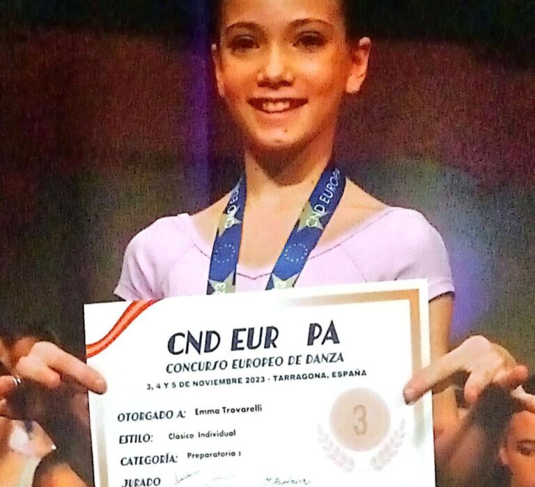 Emma Trovarelli ha conquistato il terzo posto a parimerito per la categoria classico Preparatorie B alla finale del concorso europeo CND di danza a Terragona. La soddisfazione della scuola Abc Danza
