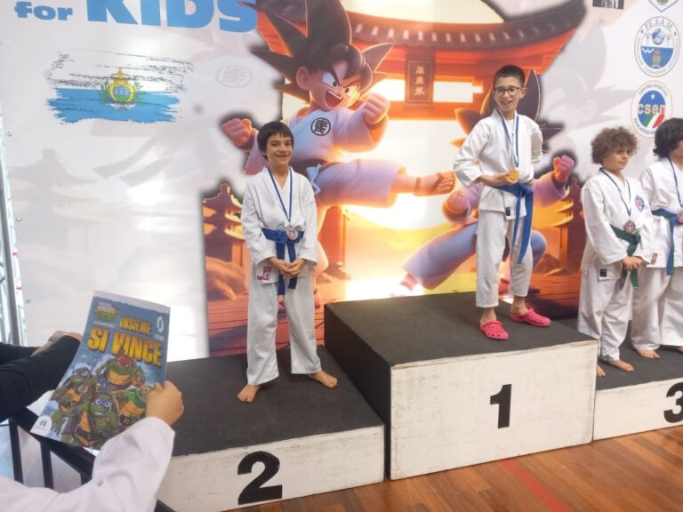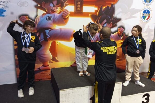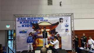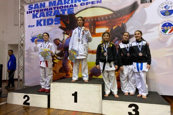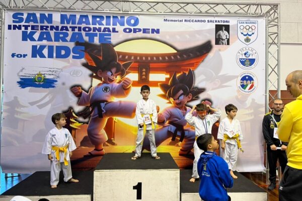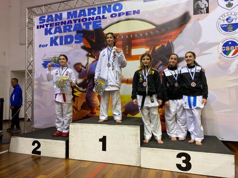 Cintura arancio per Ginevra Cialandroni, Eva Giorgetti, Osvaldo Mateo De Paula, Lorenzo Nigiotti, Cosimo Ceccanti, Mattia Valenzisi, Zerina Qeti, Mirko Agrusa. Cintare Verde per Caterina Fastami, Daniele Cicorelli, Greta Gigliucci, Alyssa Angeli, Andrea Ulivari, Elisabetta Cei, Ousmane Fall, Josef Raiola. Cintura blu per Enea Agrusa, blu/marrone per Giusy Grimaldi e Nicole Ruotolo, cintura marrone per Jacopo Capperi, Giulia Tisaianu, Daiana Sartori e Gianfranco Esposito. Matilde Gronchi ha passato brillantemente il passaggio a cintura nera 2’Dan Fijlkam organizzato dal Comitato Regionale Toscano al palasport di Siena. L’ultima gara la San Marino Karate Kids, gara organizzata dalla Fesam (Federazione Sammarinese) in collaborazione del Csen Karate Toscana nel nome del responsabile Alessio Magnelli, si è conclusa con tutti i bambini e ragazzi a podio consacrando un anno da ricordare. I labronici conquistano 36 medaglie, 12 medaglie d’oro, 7 d’argento e 17 di bronzo. Nella specialità kumite (combattimento) primo posto per Leonardo Magnelli, Enea Agrusa, Lorenzo Nigiotti, Giulia Tisaianu, secondo posto per Nicole Ruotolo, terzo posto per Jacopo Capperi, Giusy Grimaldi, Eva Giorgetti, Caterina Fastami, Melissa Cialandroni e Michele Tassan. Nella specialità percorso a tempo,primo posto per Geremia Agrusa e Cosimo Ceccanti, secondo posto per Ginevra Cialandroni. Nel kata (forma) primo posto per Enea Agrusa, Geremia Agrusa, Cosimo Ceccanti, secondo posto per Nicole Ruotolo e Lorenzo Nigiotti terzo posto per Ginevra Cialandroni, Caterina Fastami, Eva Giorgetti, Giusy Grimaldi, Giulia Tisaianu e Jacopo Capperi. Nella prova tecnica palloncino primo posto per Enea Agrusa, Geremia Agrusa e Cosimo Ceccanti, secondo posto per Nicole Ruotolo, Jacopo Capperi e Lorenzo Nigiotti, terzo posto per Ginevra Cialandroni, Caterina Fastami, Eva Giorgetti, Giusy Grimaldi e Giulia Tisaianu. Durante la festa che ha sancito la chiusura dell’anno agonistico sono stati decretati anche gli atleti dell’anno dell’Accademia dello Sport Karate. Per la categoria Bambini 1° posto per Enea Agrusa, 2° posto Giusi Grimaldi, 3° posto Nicole Ruotolo e Cosimo Ceccanti. Per la categoria Under 18 1° posto di Leonardo Magnelli, 2° posto Melissa Cialandroni, 3° posto Michele Tassan, Greta Gigliucci, Nicolas Pietroni. Nei senior 1° posto per Emanuele Magnelli, 2° posto Matilde Gronchi, 3° posto Giada Barontini e Nicolas Guelfi.