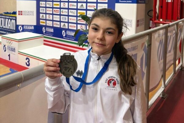 La Palestra Senshi Livorno ha preso parte alla prima tappa del Trofeo Italia Esordienti B, uno degli appuntamenti più prestigiosi del calendario nazionale giovanile. La manifestazione, ospitata a Leinì, Torino, ha visto la partecipazione di oltre 800 atleti provenienti da tutta Italia, confermandosi un banco di prova fondamentale per i giovani judoka che ambiscono alla ranking nazionale e a futuri traguardi agonistici. La giornata si è aperta con la gara del judoka Mattia Liparulo, schierato nella categoria 55 kg, una delle più numerose e competitive del torneo, con ben 76 atleti in gara. Mattia ha affrontato un avversario di alto livello già al primo incontro. Nonostante l’impegno e la determinazione, il match non è andato a suo favore e, purtroppo, il suo avversario non è stato successivamente recuperato. Questo ha impedito a Mattia di rientrare in gioco attraverso i ripescaggi, chiudendo così la sua gara in questa tappa. Un’esperienza comunque importante per il giovane atleta livornese perché confrontarsi in una categoria così affollata e qualificata rappresenta un passo importante nel suo percorso di crescita tecnica e mentale. Nel pomeriggio, invece, l’agonista Emma Cicero ha conquistato una meritatissima medaglia di bronzo. Emma ha affrontato la gara con lucidità, determinazione e grande maturità tattica, dimostrando di saper gestire la pressione di un torneo nazionale di così alto livello. Incontri intensi dove, scelte tecniche efficaci, le hanno permesso di salire sul podio e portare a casa un risultato di grande valore. Dopo aver vinto due incontri per Ippon, nella semifinale ha perso per sanzioni. Questa medaglia rappresenta non solo un traguardo personale, ma anche un segnale incoraggiante per tutto il gruppo agonistico della palestra di via Grotte delle Fate di Livorno. “La partecipazione al Trofeo Italia di Leinì ha offerto ai nostri giovani atleti un’importante occasione di confronto con il meglio del judo nazionale. La medaglia di Emma e l’esperienza maturata da Mattia sono uno stimolo per affrontare con fiducia le prossime competizioni infatti, siamo già al lavoro per i prossimi appuntamenti sul tatami” ha affermato il Tecnico Monica Iacorossi che sta accompagnando i due giovani atleti in questo percorso.