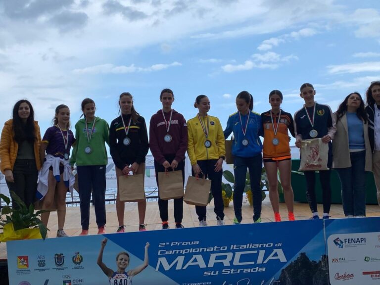 Seconda tappa del campionato italiano di società di marcia a Sant’Alessio Siculo in provincia di Messina, una trasferta logisticamente molto impegnativa con la gara dei 20km valida anche per il titolo italiano. Nella gara femminile grande prova di Sofia Fiorini che sigla il record personale in 1h34’35. Un grande risultato cronometrico per l’amaranto che ottiene il secondo posto nella gara U23 e conquista anche il bronzo nella prova assoluta dimostrando una crescita tecnica veramente importante. Al maschile Davide Finocchietti chiude con il crono di 1h26’40, lontano dalle sue migliori prestazioni, mentre Gianluca Picchiottino non termina la prova. Sui 10km allievi Giacomo Traina fa 53’28 mentre i giovani Claudio Mercaldo nei 6km cadetti è quarto in 30’25; quinta piazza per Aurora Dominici sui 4km con 20’41.