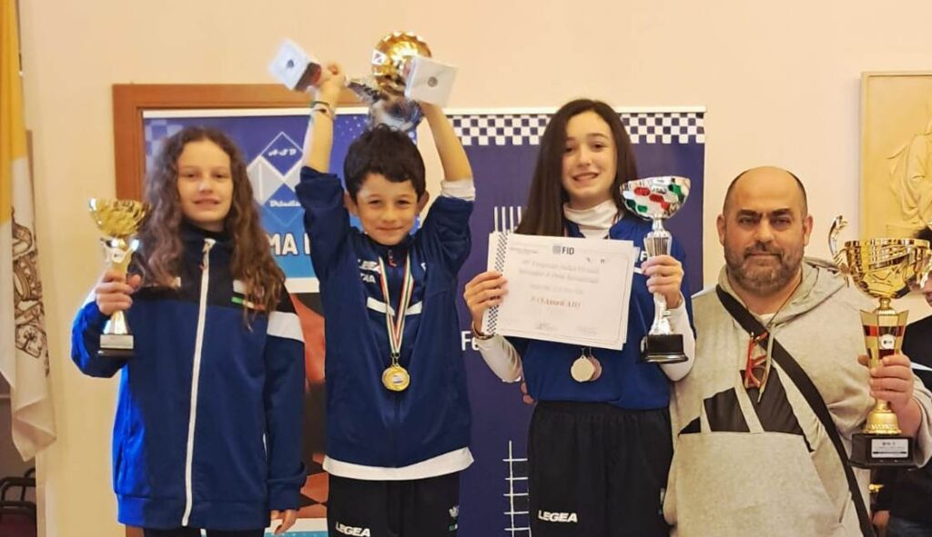 I nostri due alfieri, il Gran Maestro Michele Borghetti, 53 anni e il piccolissimo Giulio Damari, appena 8 anni e mezzo, hanno vinto entrambi i campionati, ognuno nella rispettiva categoria di gioco: Michele Borghetti negli over50 e Giulio nel gruppo "speranze"