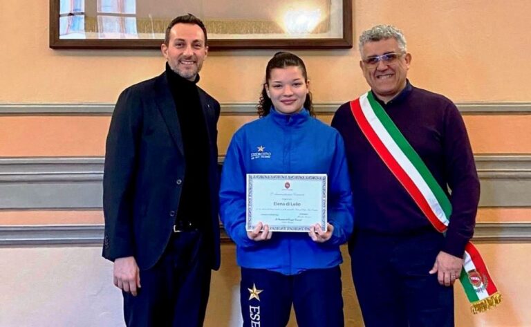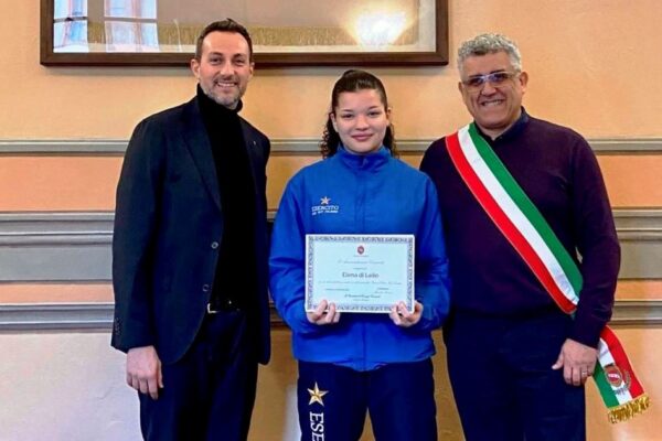 In questo contesto Elena Di Lelio, per la disciplina olimpica del Karate Fijlkam in forza alla ASD Esercito – 187 Folgore di Livorno, è stata premiata alla presenza del presidente del consiglio comunale – sindaco Marcello Pierucci e dall’ assessore a delega dello sport Luca Mecchi, che, per una serie di traguardi raggiunti, ultimo tra questi, è stato proprio l’ottimo posizionamento in classifica con la conquista della meritata medaglia di bronzo alla competizione internazionale del “Gran Prix Croatia”, svoltasi nel mese scorso a Samobor – Croazia, specialità Kata “forma”.