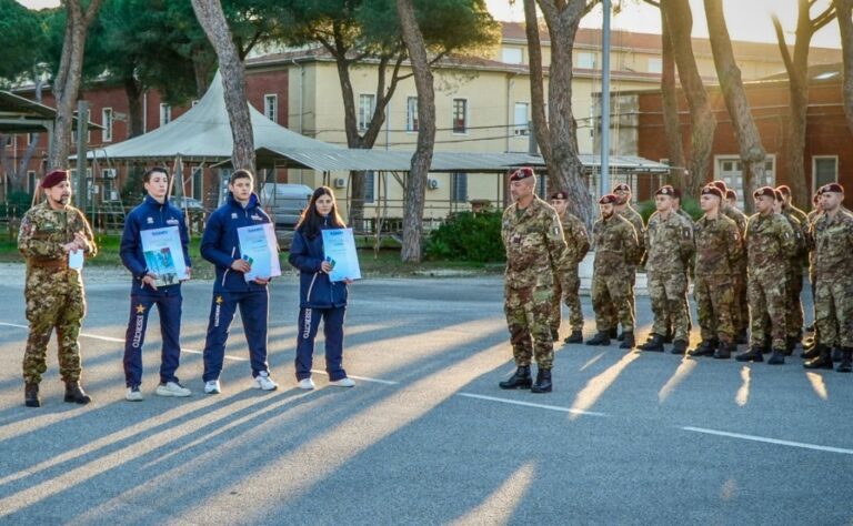 Un momento davvero speciale e significativo per i “Folgorini” Emma Ludovica Frizzi, Leonardo Bombardi e Jacopo Citi, che hanno avuto l’onore di partecipare alla cerimonia dell’alza bandiera nella Caserma Vannucci, sede del 187° Reggimento Paracadutisti Folgore di Livorno.