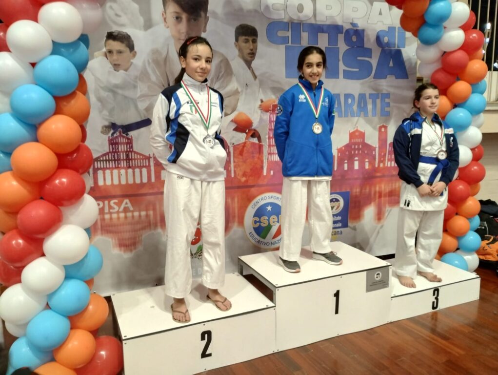 Giorgio Tosolini 1° al bersaglio controllato, 2° posto nel Kata cat.B/Gia-Bambini. Lorenzo Frati 1°posto Kata-Bambini B/Gia, Francesco Bandecchi 1°posto cat Ragazzi Bia/Gia, Elia Baldini 3°posto cat.g/Ara. Ragazzi: Gabriele Grandi 3° posto Kata Cat B/Gia Fanciulli. Emma Frati 2° posto cat Esordienti ve/blu, Greta Ludovica Barbaro 2° posto Kumite kg -45