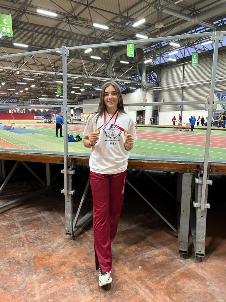 A Carrara grande prova nello sprint per la saltatrice Michela Barotti che conquista il titolo toscano assoluto nei 50m. Per lei primato personale già in batteria con 6″74, tempo che migliora ancora in finale fino a 6″70, crono che le vale il record societario assoluto. Nella stessa sede titolo toscano assoluto anche per Greta Pistolozzi nel lancio del peso, che riesca a scagliare fino a 12,30m. Nei 50m al maschile scatta dai blocchi Giampaolo Ippolito che taglia il traguardo in 6″43, migliorandosi in finale fino a 6″37. A Firenze doppietta di titoli nel salto in lungo grazie a Matilde Guarino e Samuele Baldi che siglano entrambi il primato stagionale. Samuele vince e convince con una buona serie con l’apice a 7,00m, mentre Matilde atterra a 5,57m, anche lei in una serie molto consistente. Secondo posto per Caterina Da Mommio che nonostante inagibilità del suo campo di allenamento riesce a balzare a 5,48m. Nell’alto Fabio Ciabatti si ferma a quota 1,50m, mentre Miriam Nanuti arriva a 1,49m. Nel triplo ancora qualche problema per Camilla Alesi che si ferma a 11,07m, mentre nel salto con l’asta Matteo Albieri valica l’asticella a quota 2,40m.