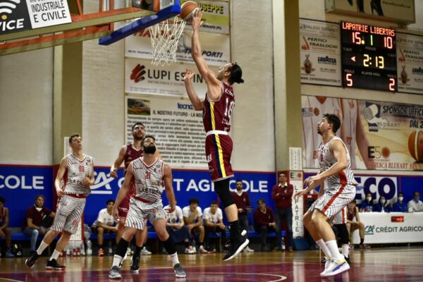 Per 30’ gli amaranto hanno mascherato le assenze grazie ad una concentrazione feroce e a ottime scelte di tiro che hanno costretto i quotati padroni di casa a remare a lungo controcorrente. Nel finale però la Libertas è andata in debito d’ossigeno sebbene Fantozzi abbia concesso alti minutaggi anche ai giovani Kuuba (15) e Mancini (11).
