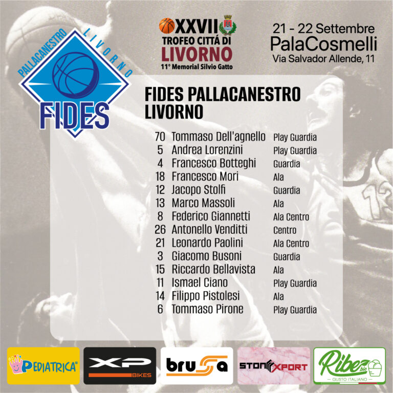 Quest’anno è stato deciso di proporre le quattro squadre livornesi, tutte realtà della Serie C Silver Regionale. Oltre alla società organizzatrice (US LIVORNO BASKET) parteciperanno la LIBERTAS LIBURNIA ( C Silver) – FIDES PALLACANESTRO (neopromossa C Silver) e INVICTUS BASKET – (C Silver).